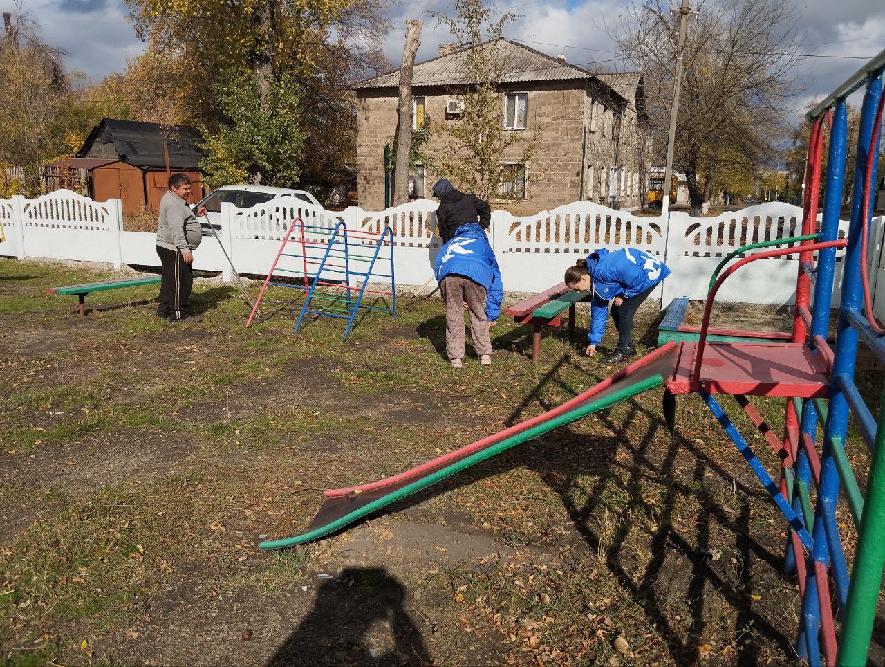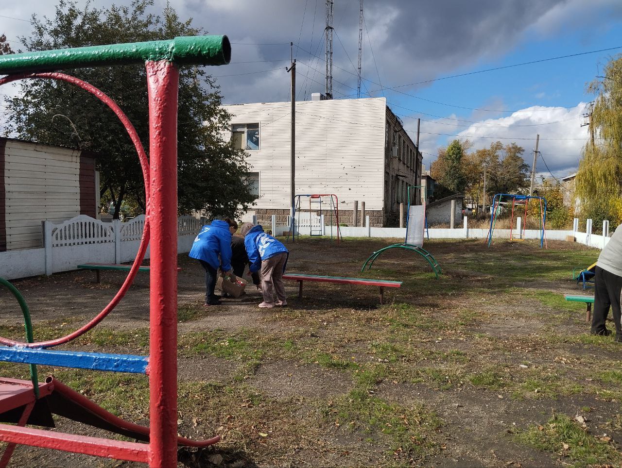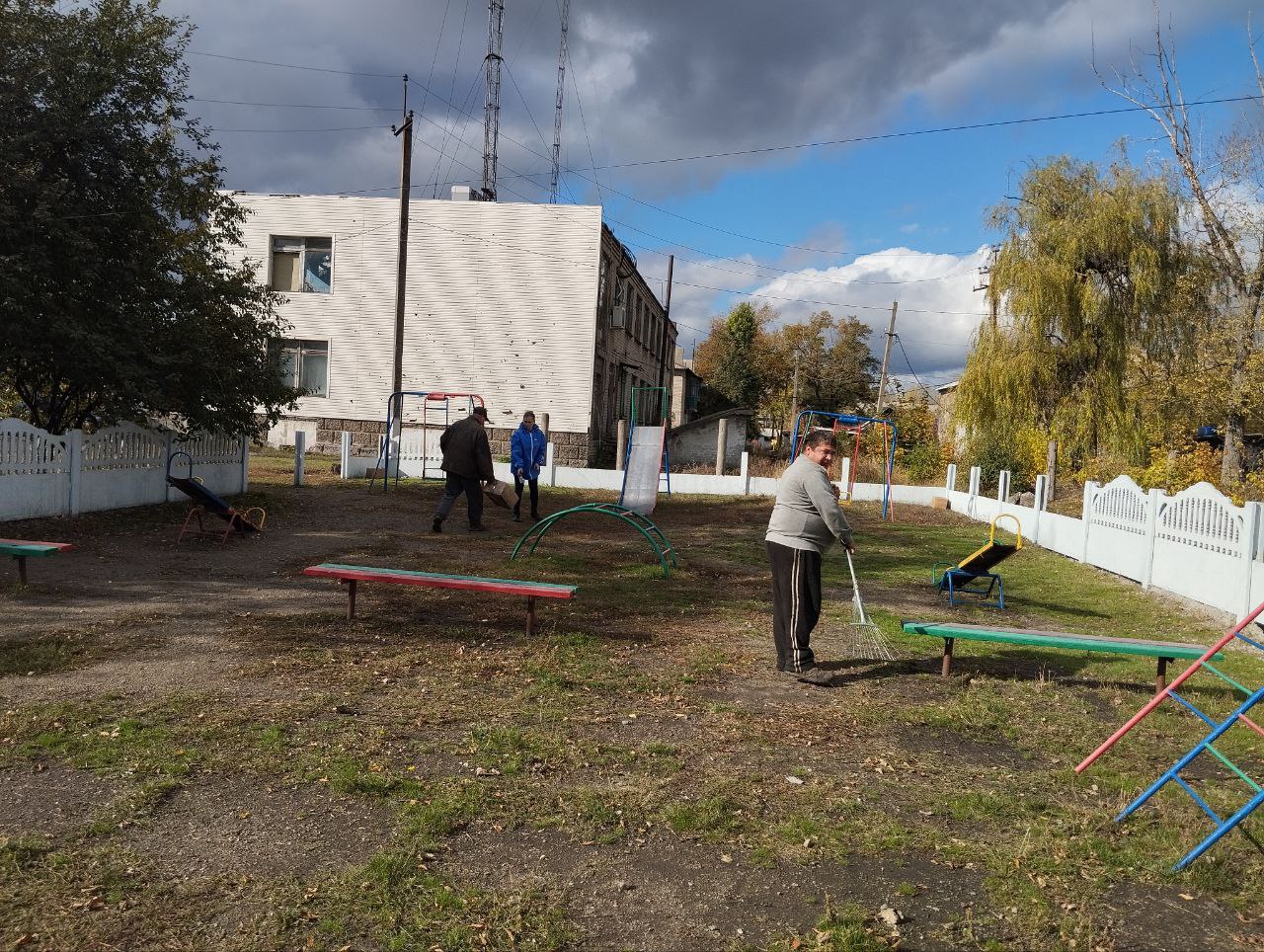 Сегодня сотрудниками отдела жизнеобеспечения пгт Кленовый совместно с активистами первичных отделений №12 и № 20города Ровеньки ВПП «Единая Россия» провели субботник на детской игровой площадке по ул. Театральная.
