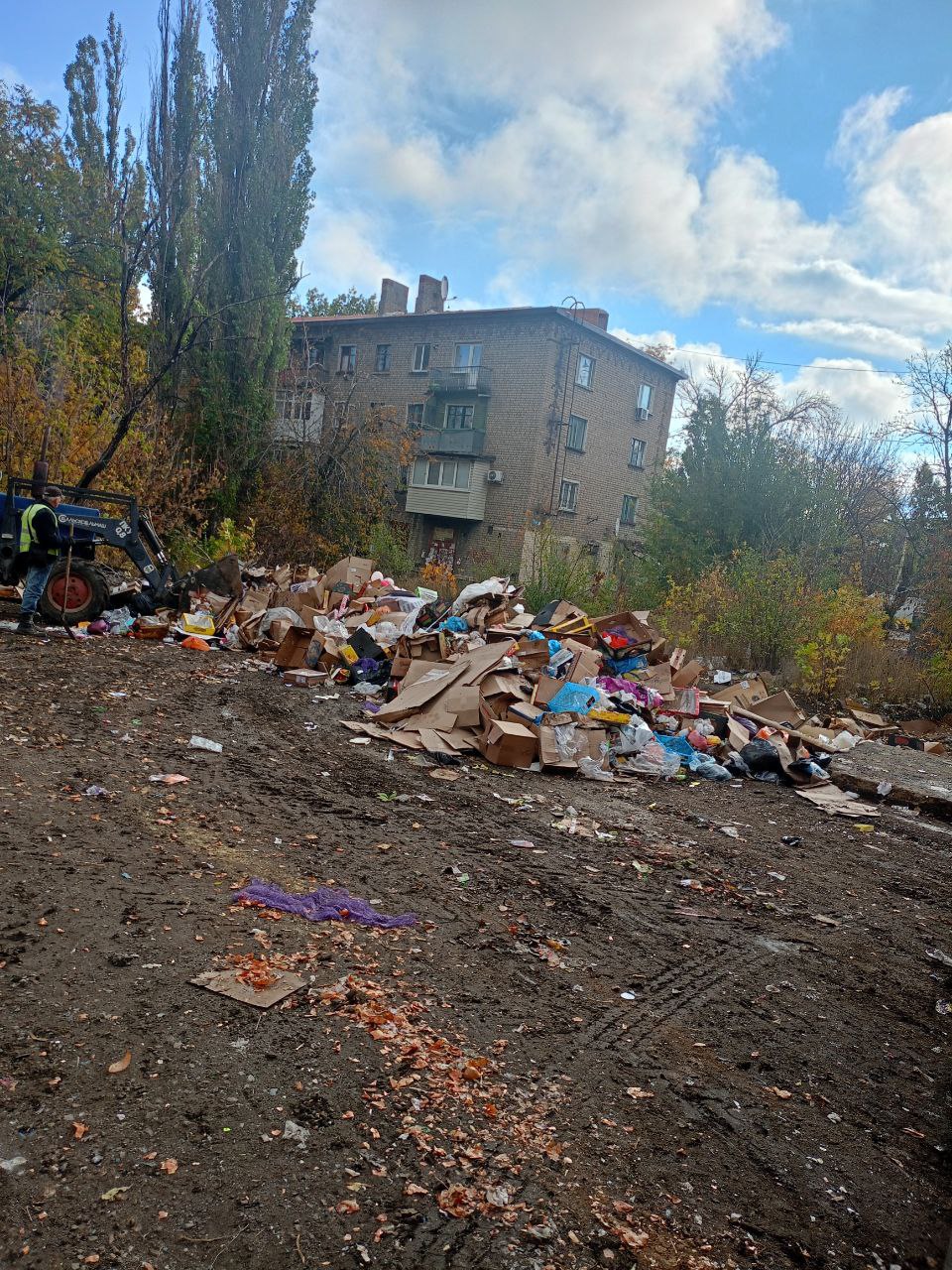 Работы проводились и в Ирмино. Работники коммунальной службы города убрали несанкционированную свалку по ул. Шевцовой.