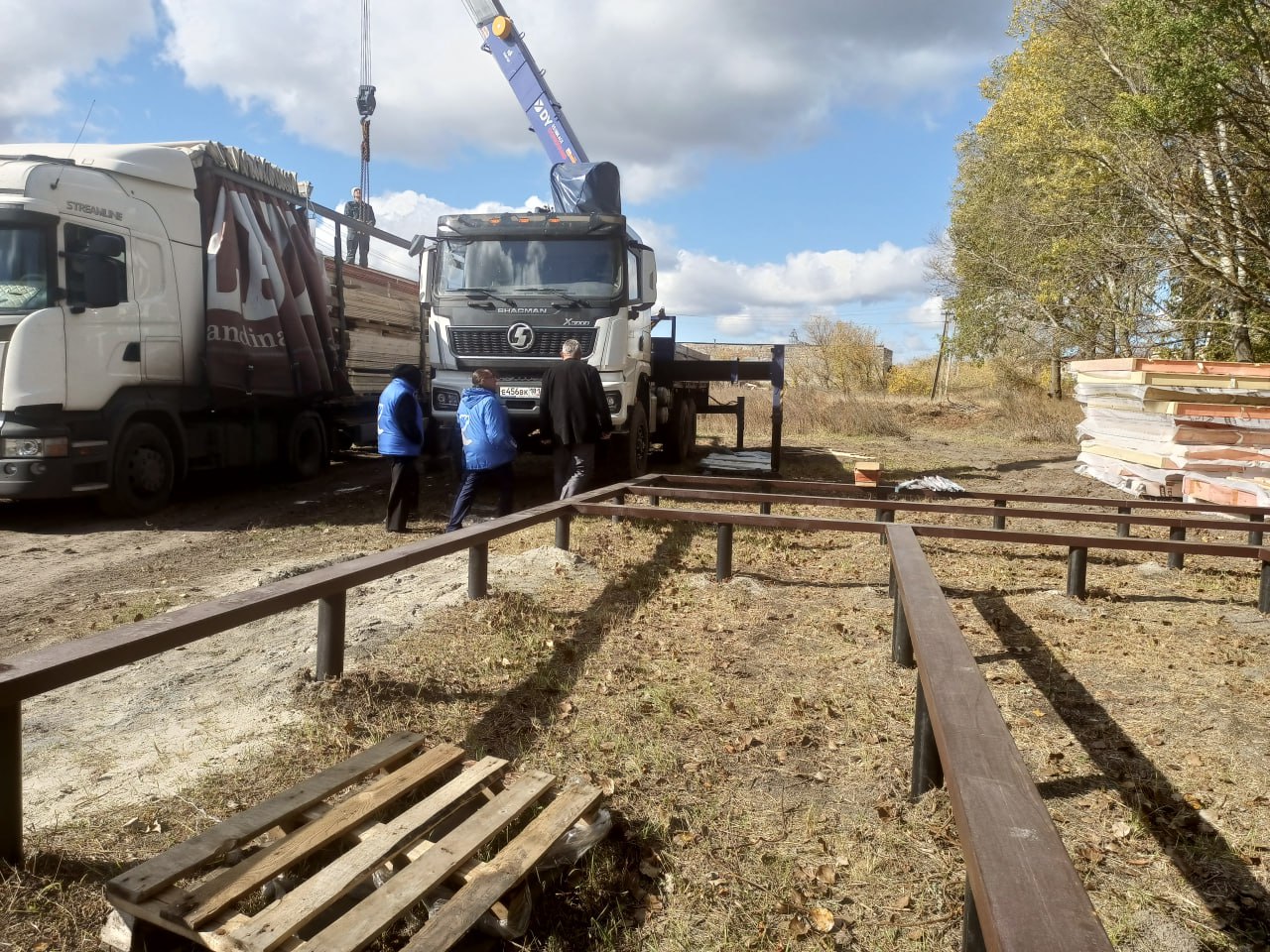 Отгружены готовые стеновые панели для установки деревянного каркаса здания, пиломатериалы для возведения кровли, бортовые камни и тротуарная плитка. В установленное время начнется возведение стен и кровли.