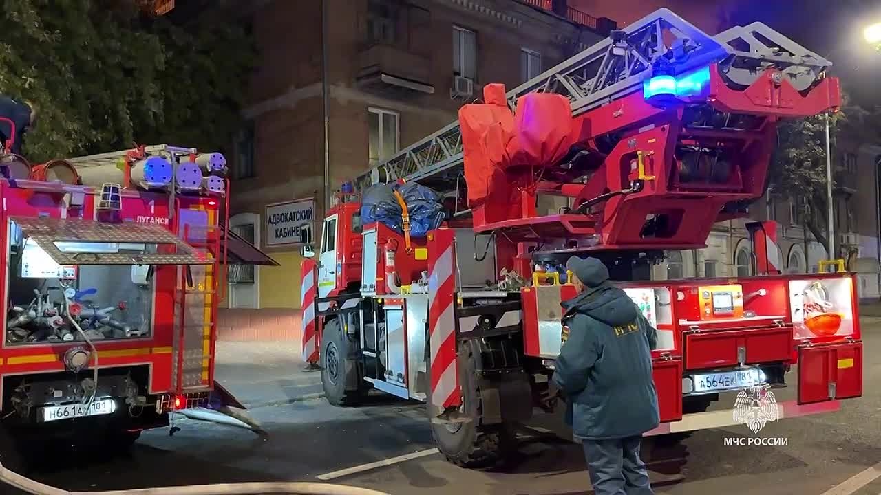 Крыша на площади 1 тыс. кв. м загорелась в многоэтажке Луганска. Спасатели эвакуируют жильцов дома — ГУ МЧС России по ЛНР.