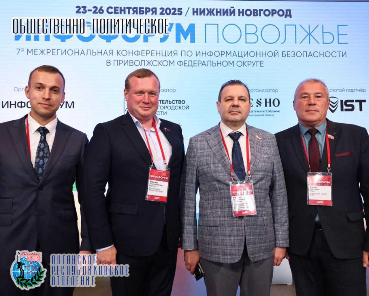 25 сентября Юрий Павлович Юров депутат Народного Совета Луганской Народной Республики, член Совета Луганского республиканского отделения Всероссийской общественной организации ветеранов «БОЕВОЕ БРАТСТВО» в Нижнем Новгороде принял участие в 7-й Межрегиональной конференции по информационной безопасности "Инфофорум-Поволжье".
