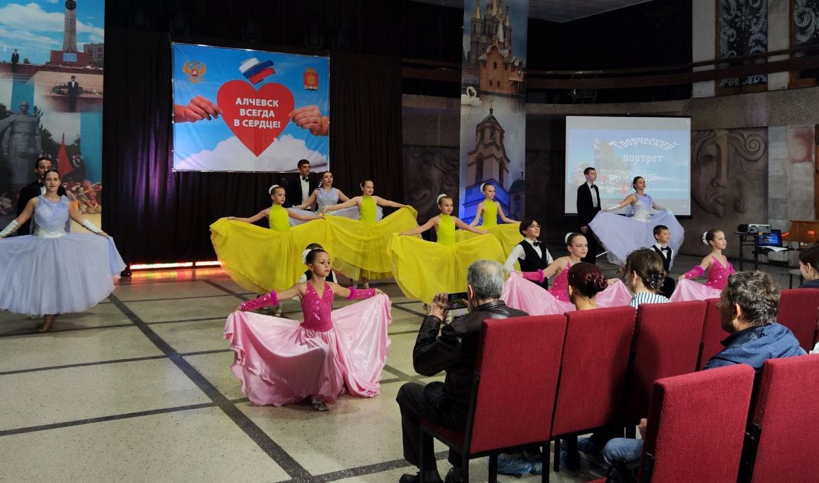 Мероприятие открыл народный ансамбль бального танца «Импульс» с хореографической композицией «Алчевский вальс». Знаменитую песню написали поэт Андрей Александрович Аксюта и композитор Михаил Иосифович Аншер, жители нашего города.