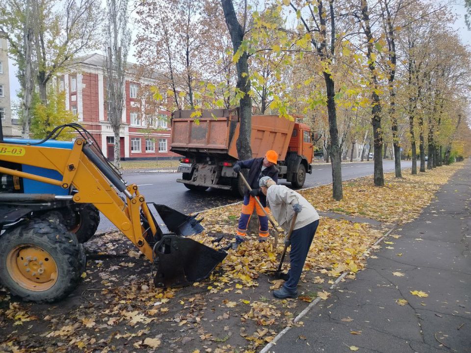 На центральных улицах работники дорожной службы приступили к уборке листвы.