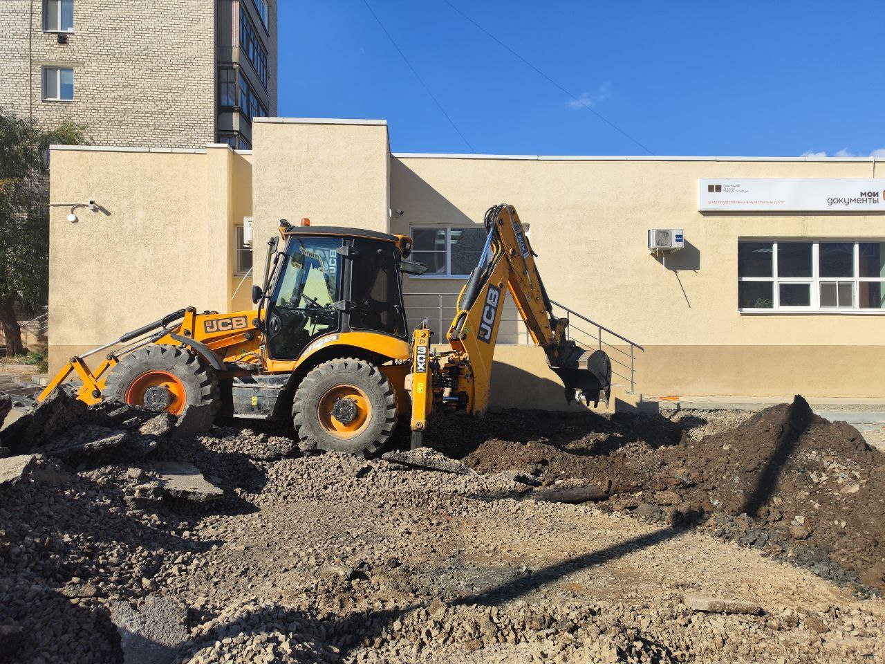 Подготовительные работы по благоустройству прилегающей к МФЦ территории завершены. На этой неделе начинается укладка асфальта. После окончания работ здесь появятся пешеходная и автомобильная дороги (920 и 2200 квадратных метров соответственно). Новый тротуар будет от центральной дороги. И людям будет удобнее подходить к МФЦ.