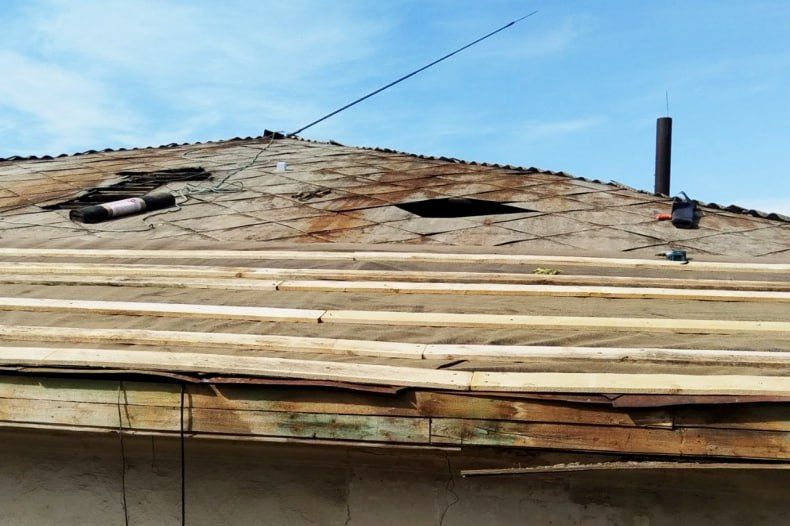 Уже пройден ключевой этап: подрядчик демонтировал старый шифер и частично разобрал прогнившую металлическую кровлю.