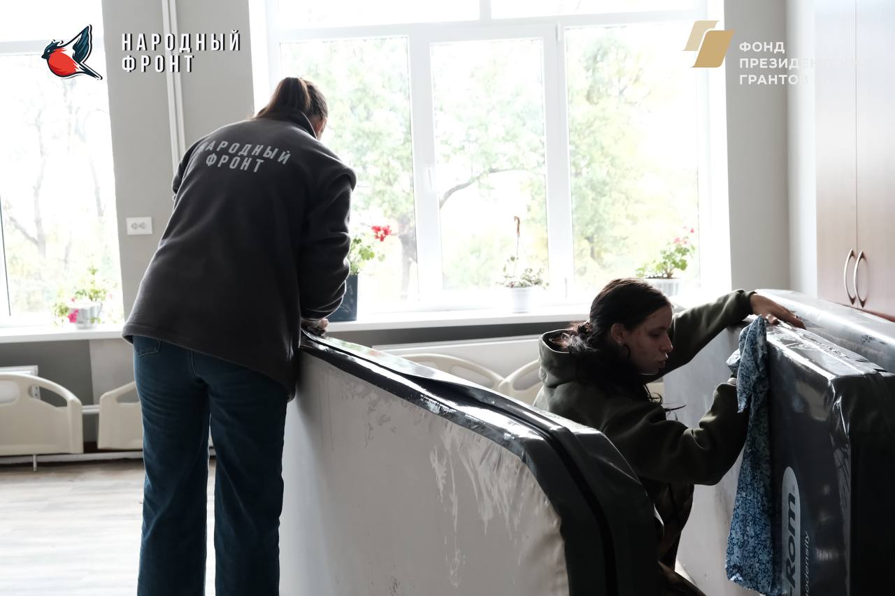 Активисты Молодёжки занимались уборкой территории, заносили кровати в палаты и приводили в порядок помещение.
