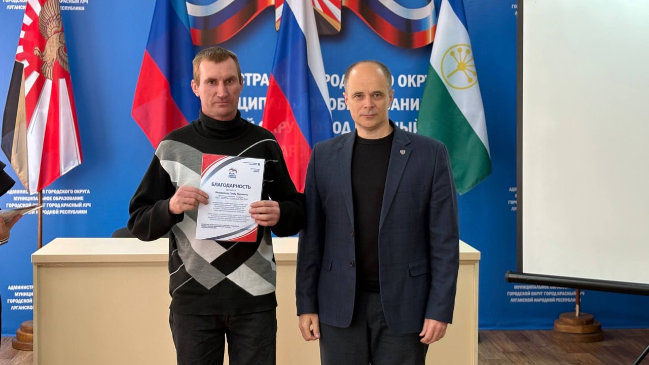 За добросовестный труд и высокий профессионализм сотрудники предприятий были отмечены благодарственными письмами от Министерства инфраструктуры и транспорта ЛНР, Администрации округа и Всероссийской политической партии «Единая Россия». Пожелал дорожникам крепкого здоровья, благополучия в семьях, уверенности в завтрашнем дне и новых трудовых успехов на благо нашего родного округа.