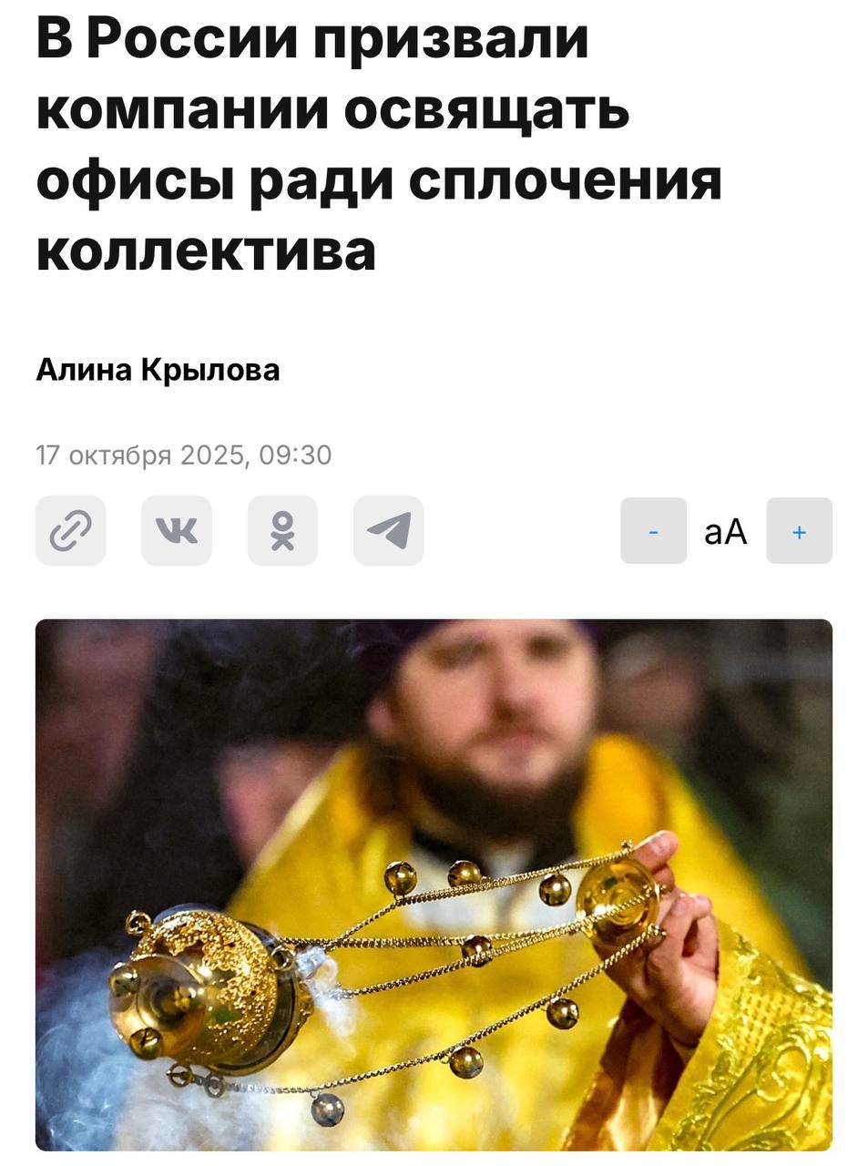 В России хотят освящать офисы