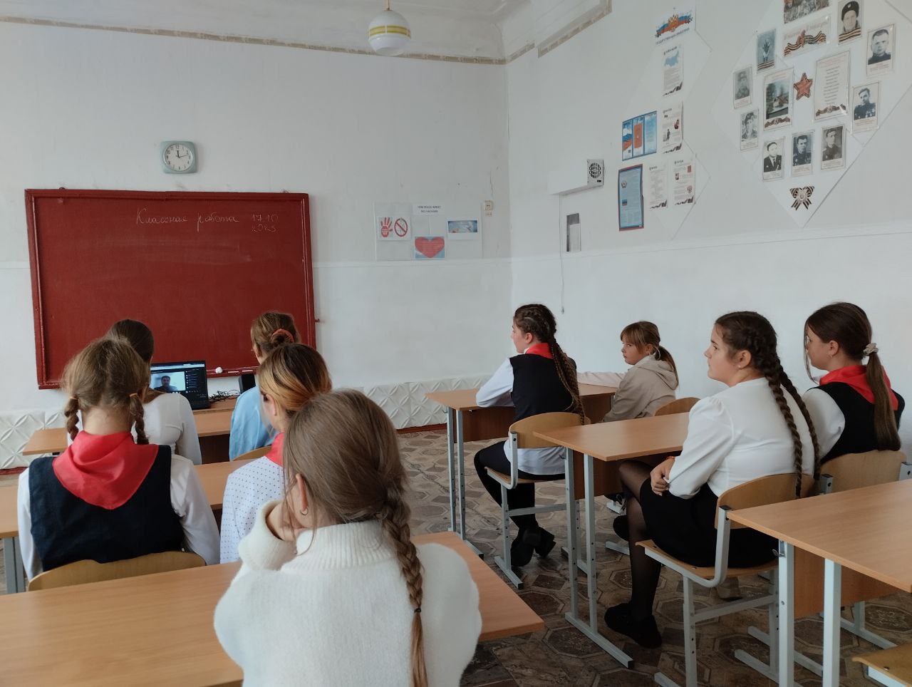 Ученикам рассказали о ратных подвигах российских военных, примерах мужества и самопожертвования различных поколений защитников Родины—от участников Великой Отечественной до сегодняшних героев.