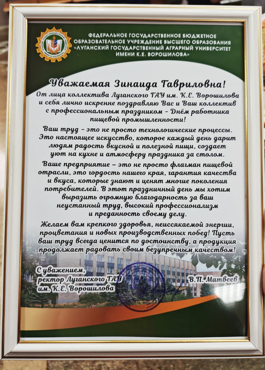 В рамках торжественного мероприятия, также приуроченного ко Дню работника сельского хозяйства, пищевой и перерабатывающей промышленности, состоялось награждение самых активных и отличившихся работников правительственными наградами, в числе которых были сотрудники предприятия АО "Луганск-Нива" Олег Кованов, Андрей Кулешин, Наталья Золотаренко.