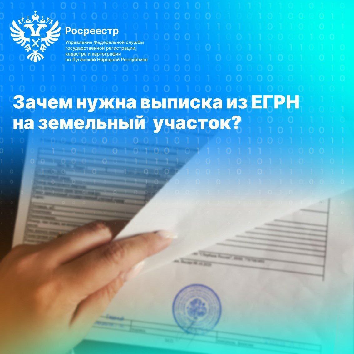 Управление Росреестра по ЛНР информирует: Единый государственный реестр недвижимости (ЕГРН) – это главная база данных о всей недвижимости в России. Выписка из ЕГРН – это официальный документ, который содержит ключевую информацию о вашем земельном участке.