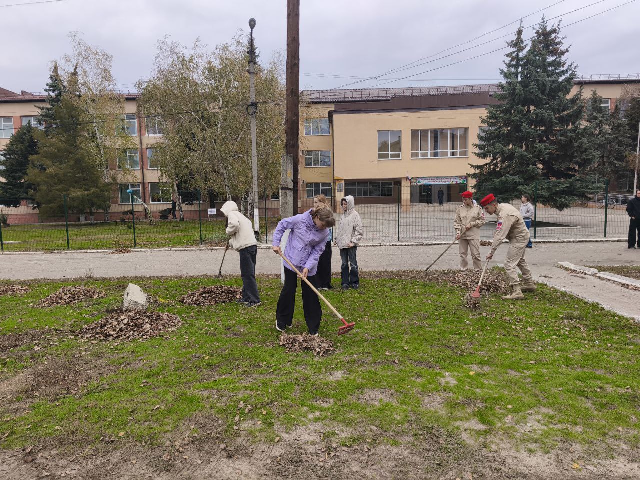 Прошёл Эко-день по уборке территории возле памятника и административного здания.