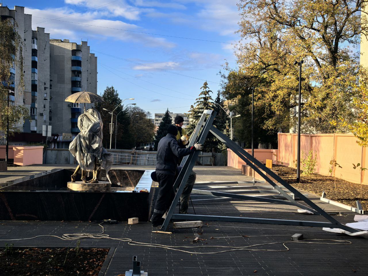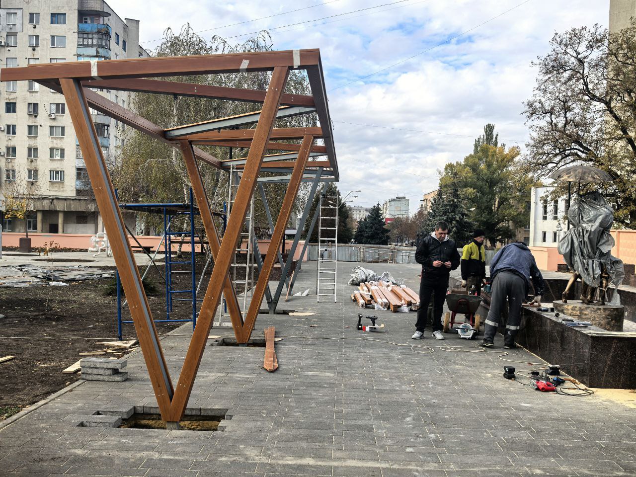 На Аллее Героев в городе Краснодоне активно продолжаются работы по благоустройству. Подрядная организация ООО «Гефест-строй» выполняет монтаж и отделку элементов зоны отдыха.