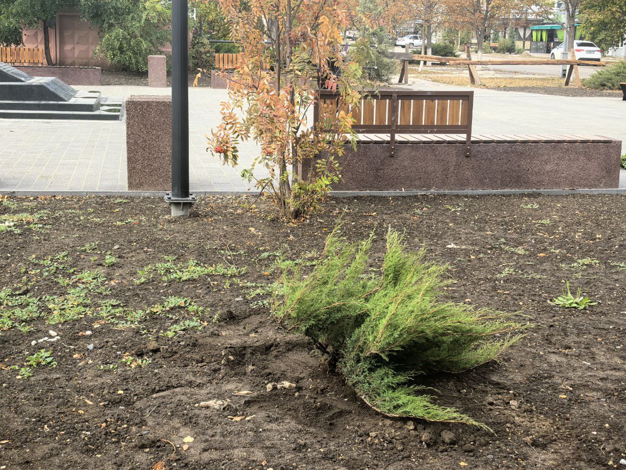 Кроме того, несколькими днями ранее на территории Аллеи были проведены работы по озеленению. Вдоль прогулочной зоны высажены каштановые деревья, кусты роз и можжевельника, которые придадут скверу еще более ухоженный облик.
