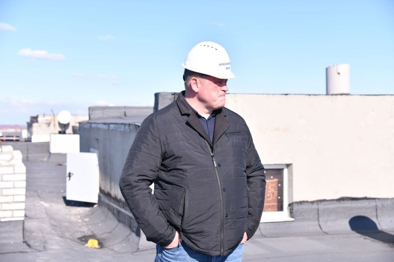 Заместитель Министра строительства и ЖКХ Красноярского края Юрий Шестопалов лично прибыл с рабочим визитом, чтобы проинспектировать ход ремонтных работ. Он внимательно осмотрел объект, пообщался со специалистами и остался доволен увиденным.