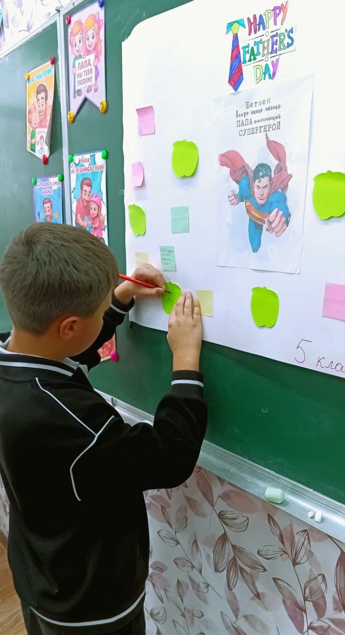 В преддверии Дня отца с целью укрепления семейных ценностей, повышения роли отцов в жизни детей и создания позитивной атмосферы в школе для обучающихся 5 класса "Станично-Луганской средней школы имени Грекова П.М. " классным руководителем Беседой Е.А. был проведен классный час. Ребята познакомились с историей возникновения праздника, сделали поздравительные открытки и стену благодарности " Спасибо, папа!", где ученики выразили слова благодарности своим отцам.