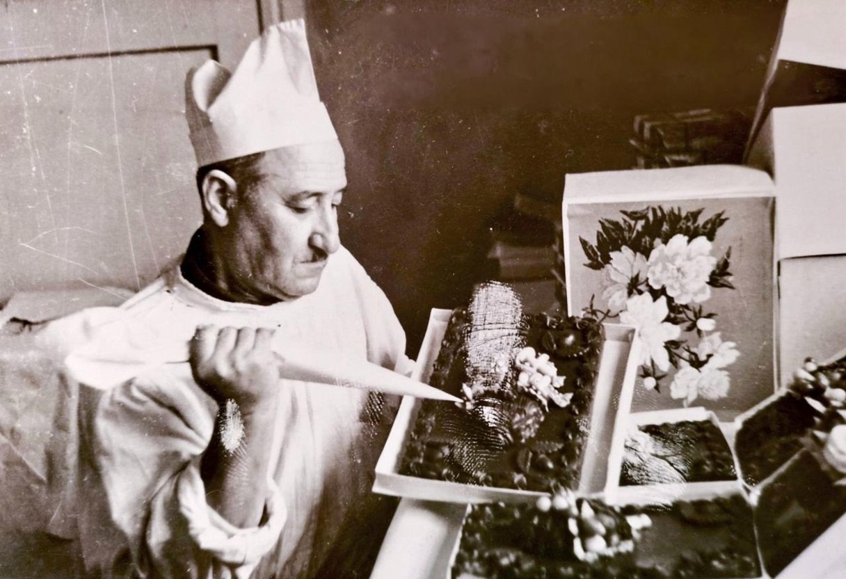 Коллеги из Архивной службы ЛНР опубликовали уникальную фотографию 1954 года, на которой талантливейший луганский мастер Ворошиловградской кондитерской фабрики Савелий Генстель работает над тем самым «Шахтерским тортом».