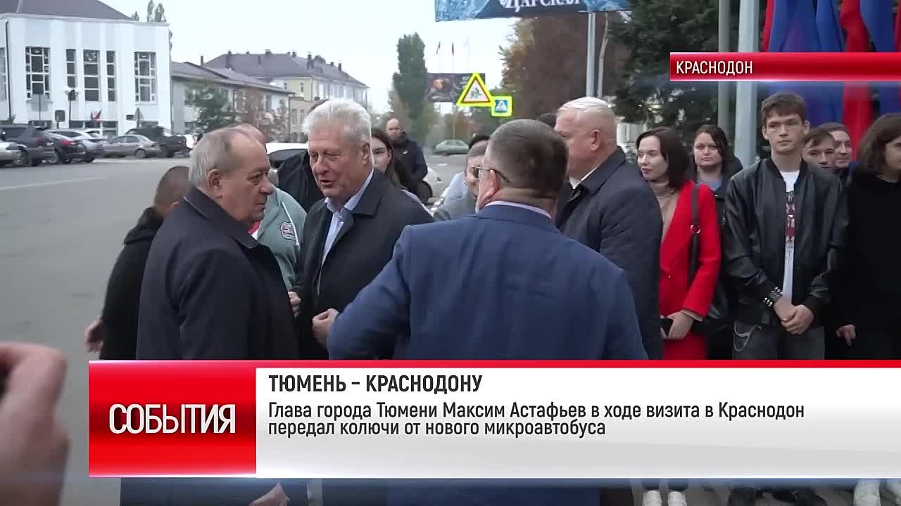 Тюмень – Краснодону. Микроавтобус с такой надписью в официальной обстановке дарят Краснодонской Администрации. Передает ключи от автотранспорта лично глава Тюмени Максим Афанасьев. Он, вместе с делегацией, посетил Республику с важной миссией