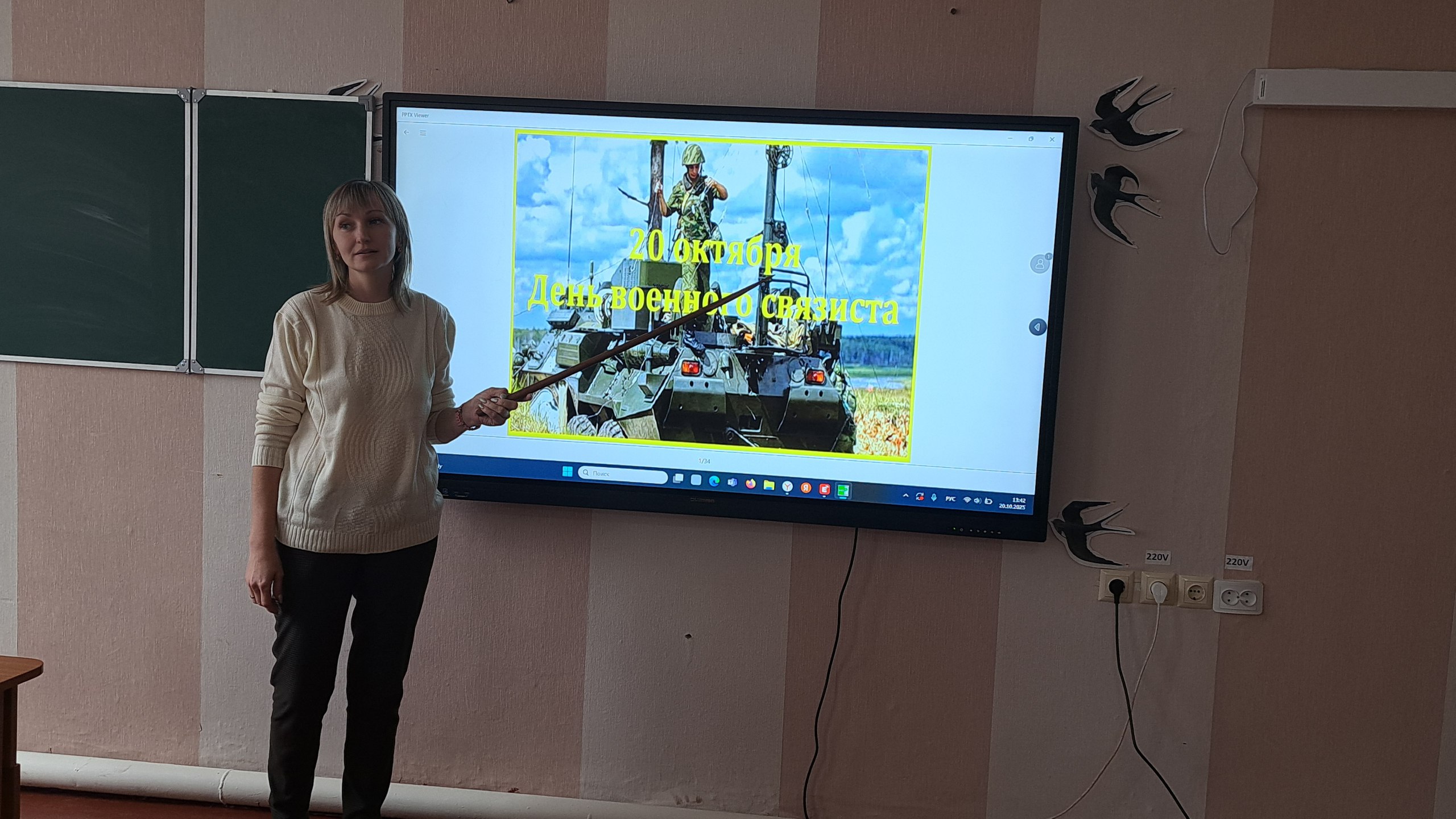 Классный руководитель, Пелых Людмила Михайловна, рассказала кадетам, что история создания войск берет начало с октября 1919 года, когда по приказу Реввоенсовета было создано управление связи Красной Армии.