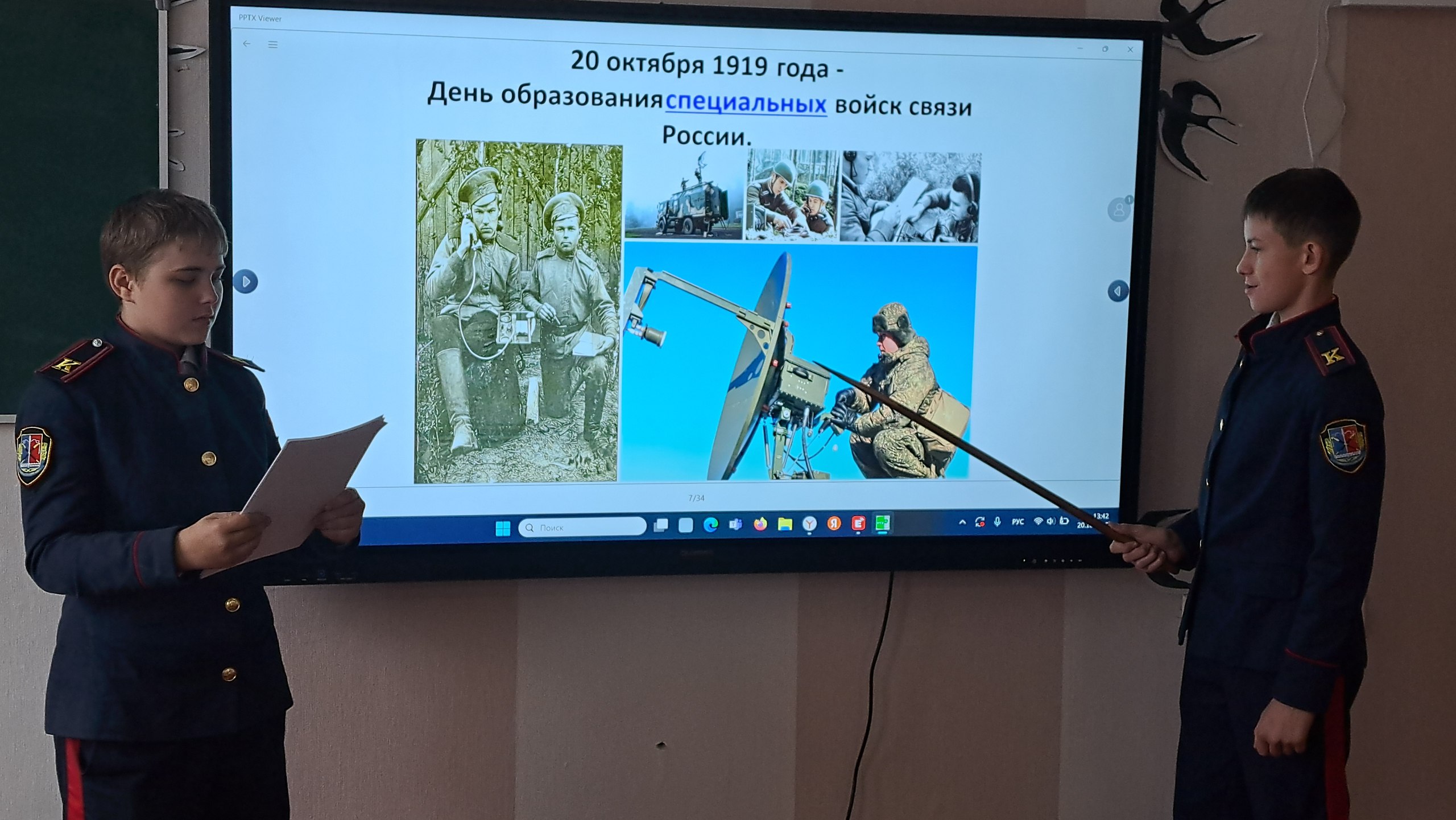В 8-А кадетском классе «Станично-Луганской средней школе имени Грекова П.М.» прошло занятие , посвященное профессиональному празднику военнослужащих войск связи.
