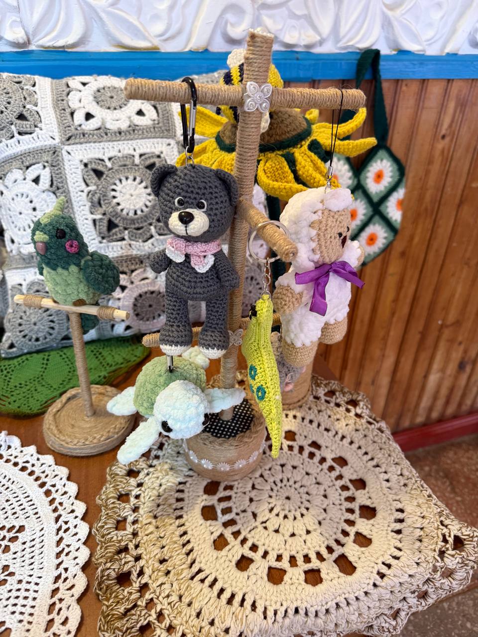 А в фойе всех гостей ждала выставка декоративно-прикладного творчества, где были представлены работы талантливых местных мастеров.