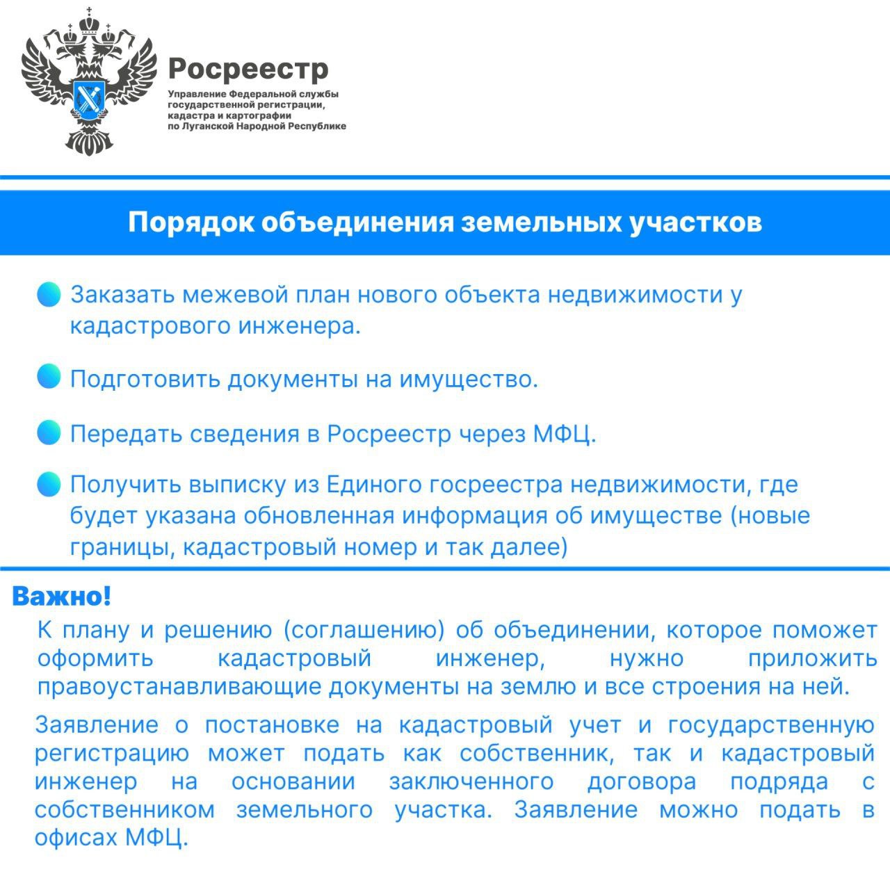 Управление Росреестра по Луганской Народной Республике напоминает жителям региона о возможности объединения земельных участков - процедуре, которая позволяет не только упорядочить землевладение, но и повысить эффективность использования недвижимости.
