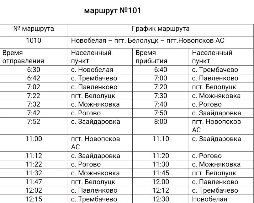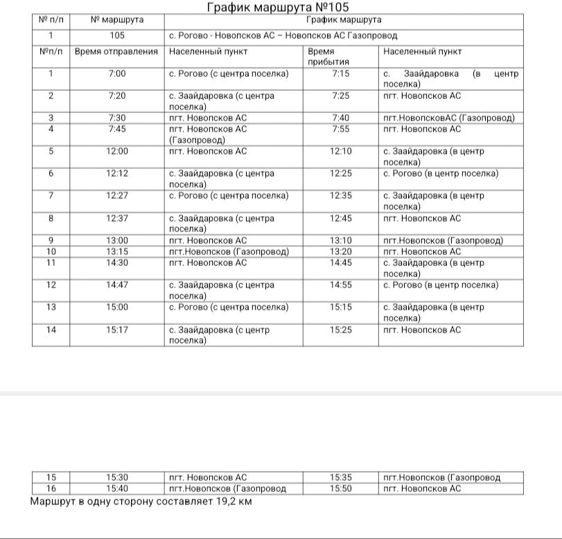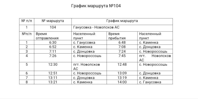 Графики маршрутов пригородных внутрирайонных автобусных маршрутов общего пользования на территории Новопсковского муниципального округа