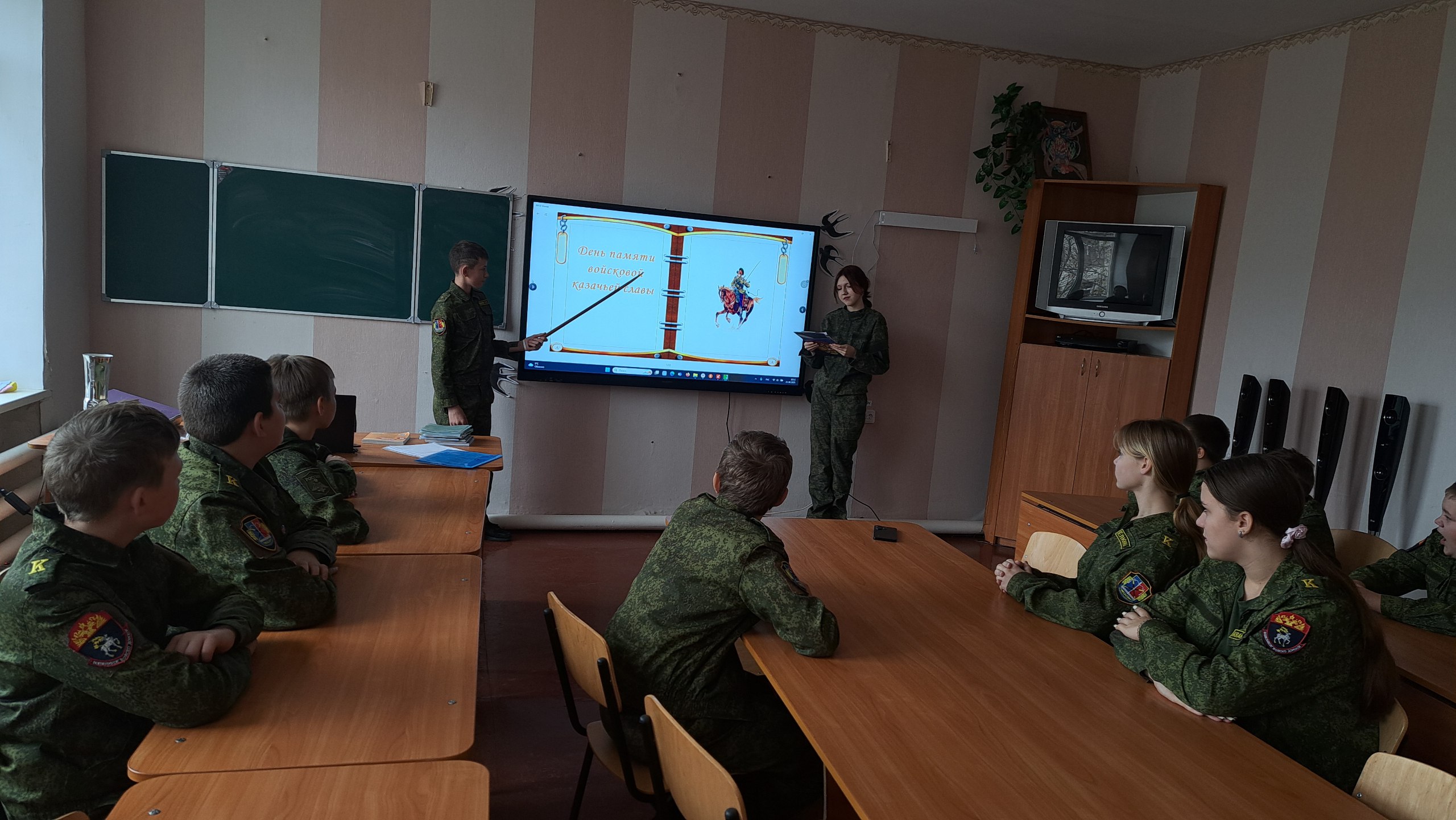 В «Станично-Луганской средней школе имени Грекова П.М.» для 7-А и 8-А кадетских классов прошел классный час, посвященный Дню памяти войсковой казачьей славы.