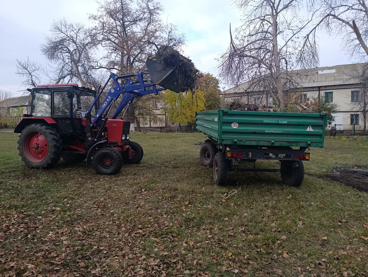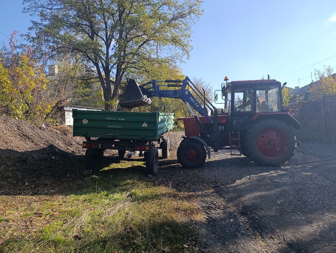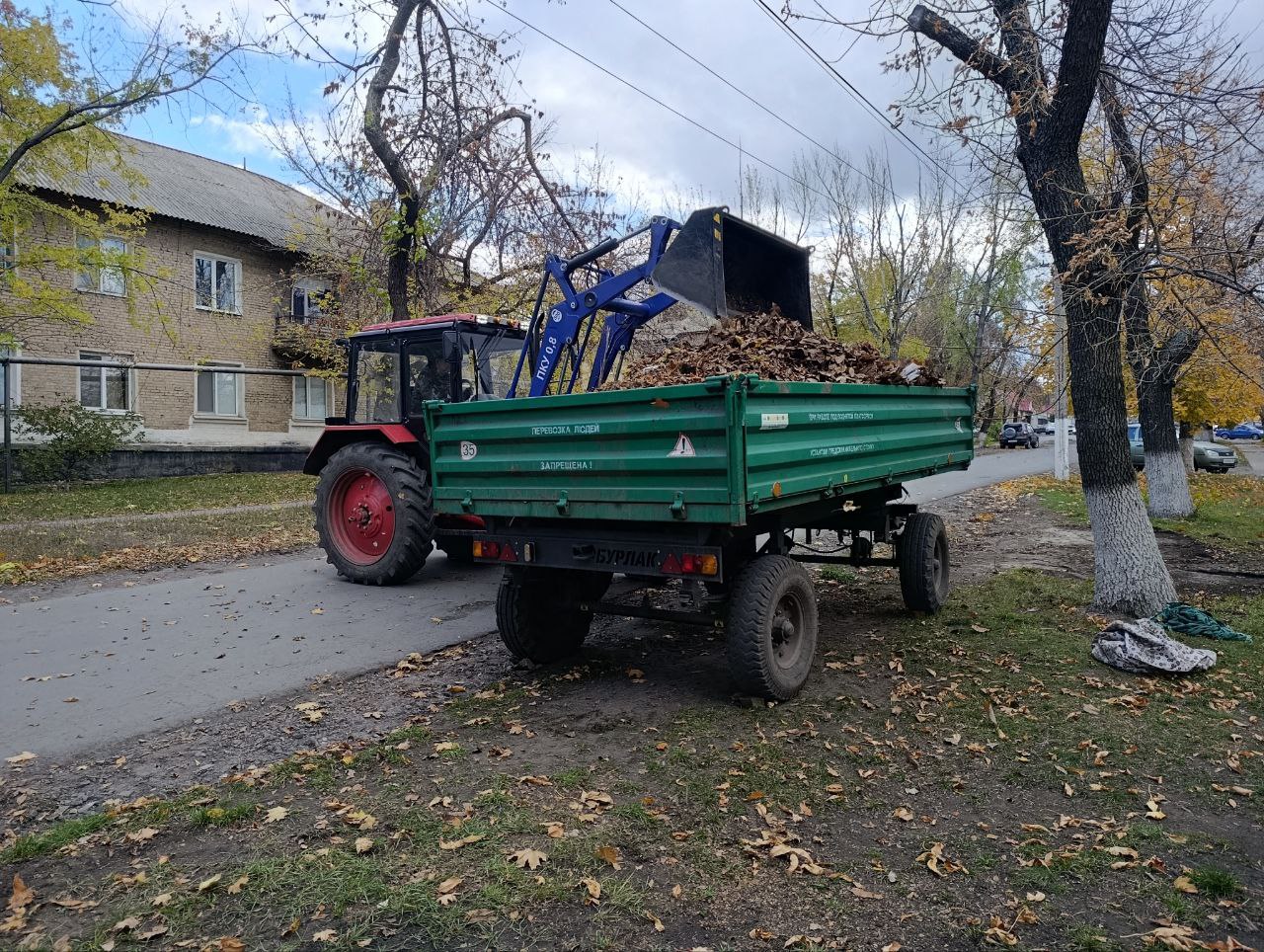 Работники МУП "Престиж", ЖЭУ № 4 и отдела жизнеобеспечения пгт Ясеновский совместно наводят чистоту и порядок в посёлке: убирают и вывозят мусор, упавшие ветки и листву по улице и переулку Ленина.