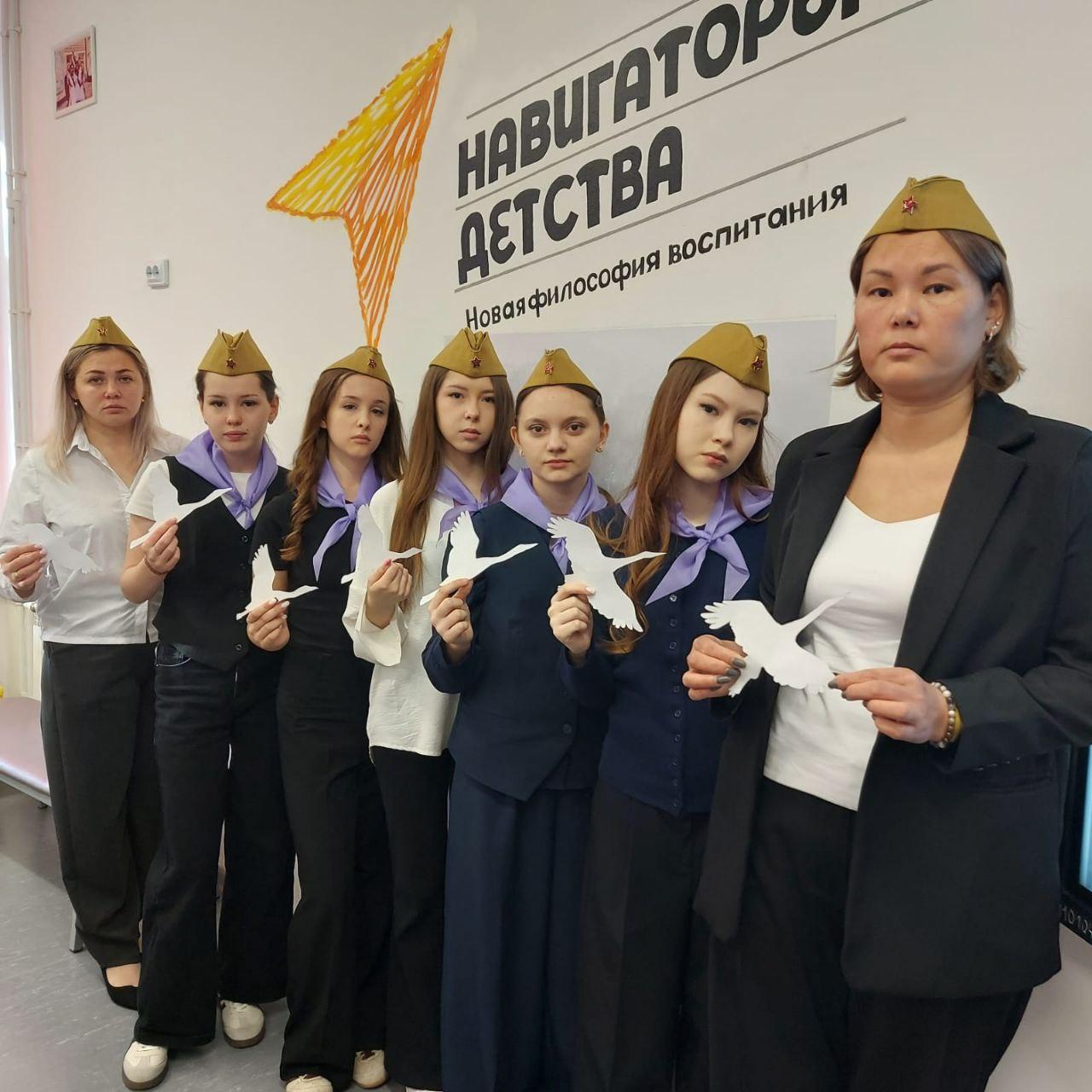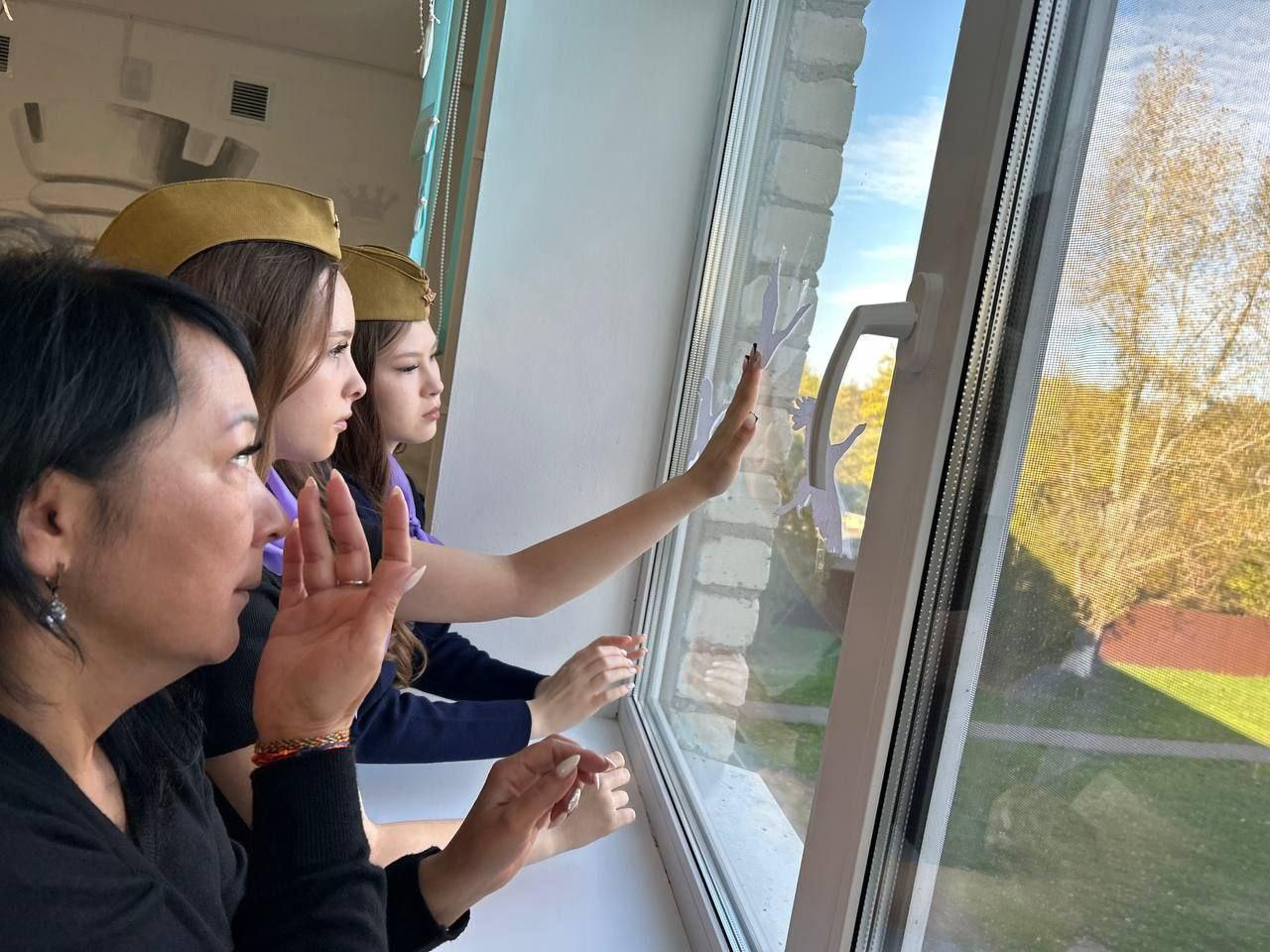 Вместе с педагогом - организатором из Нижненагольчикской СОШ Екатериной Ганиной и библиотекарями обучающиеся братских школ изготовили белых журавлей и расклеили по окнам в память о погибших на полях сражений.