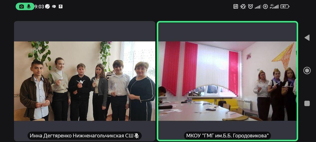 В Городовиковской многопрофильной гимназии им. Б.Б. Городовикова состоялся телемост памяти с учениками Нижненагольчикской средней школы им. В.В. Шевченко, посвященного Дню белых журавлей. Участники почтили память павших на полях сражений.