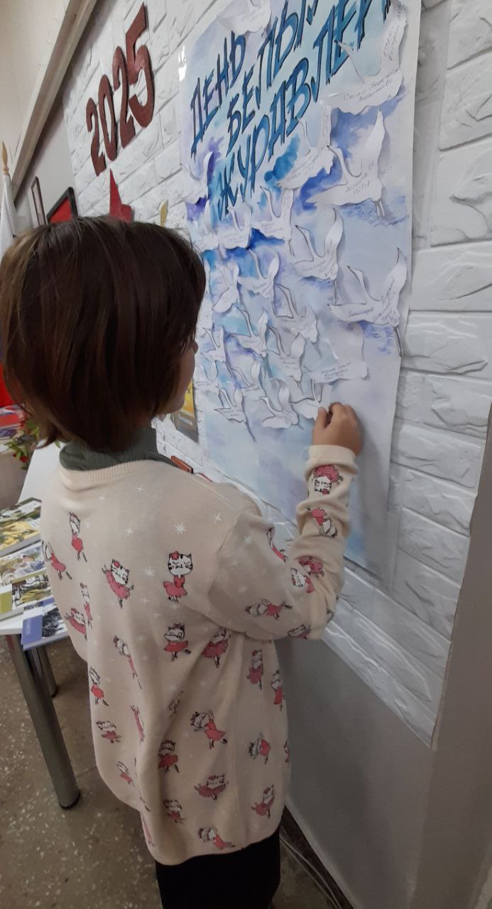 Ежегодно 22 октября в Российской Федерации и за её пределами отмечается Международный день белых журавлей, учреждённый по инициативе дагестанского поэта Расула Гамзатова, автора текста песни «Журавли». В этот день в «Библиотечном филиале для детей» МБУ «МЦБС» организована тематическая книжная выставка под названием «День белых журавлей».