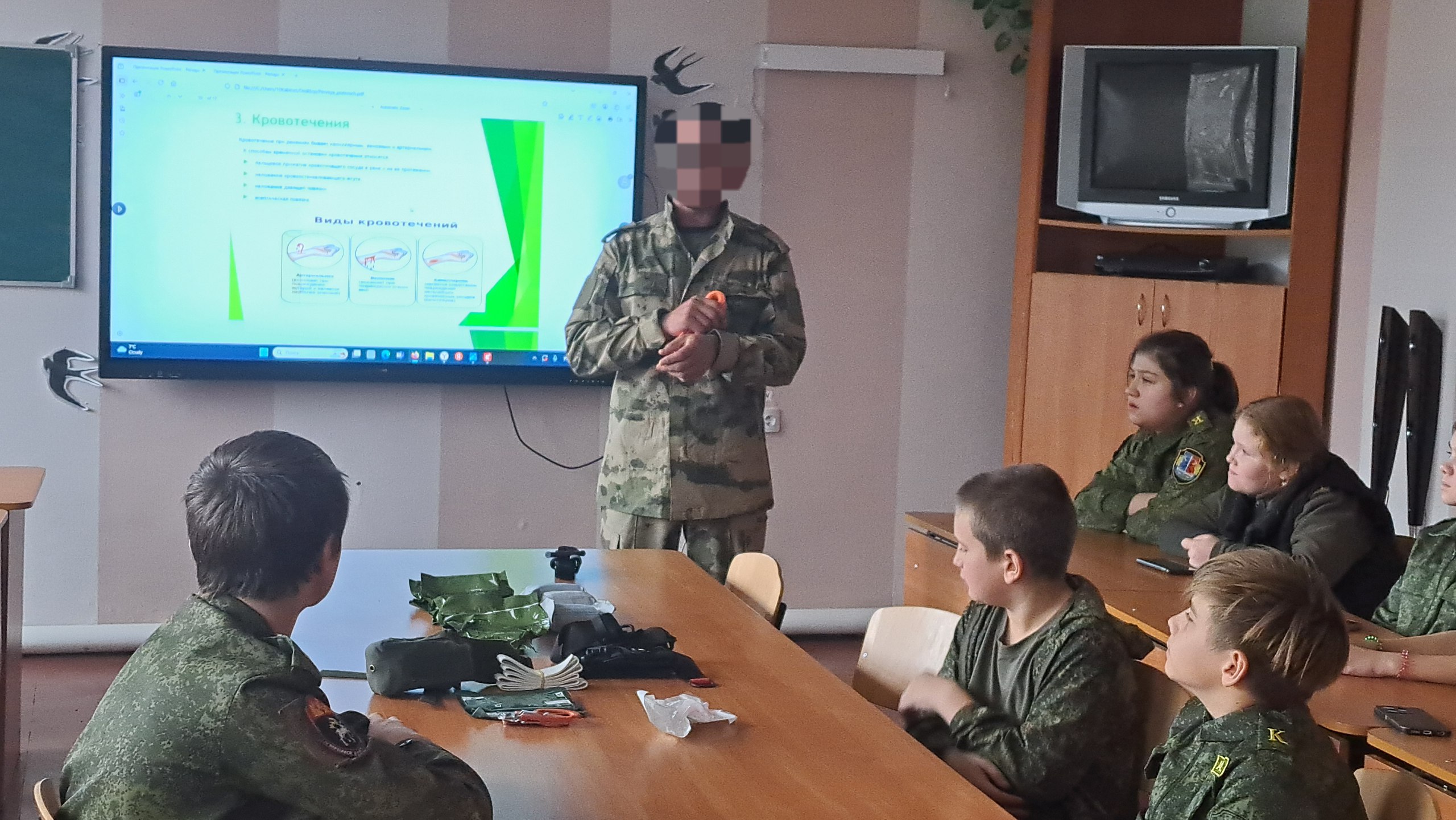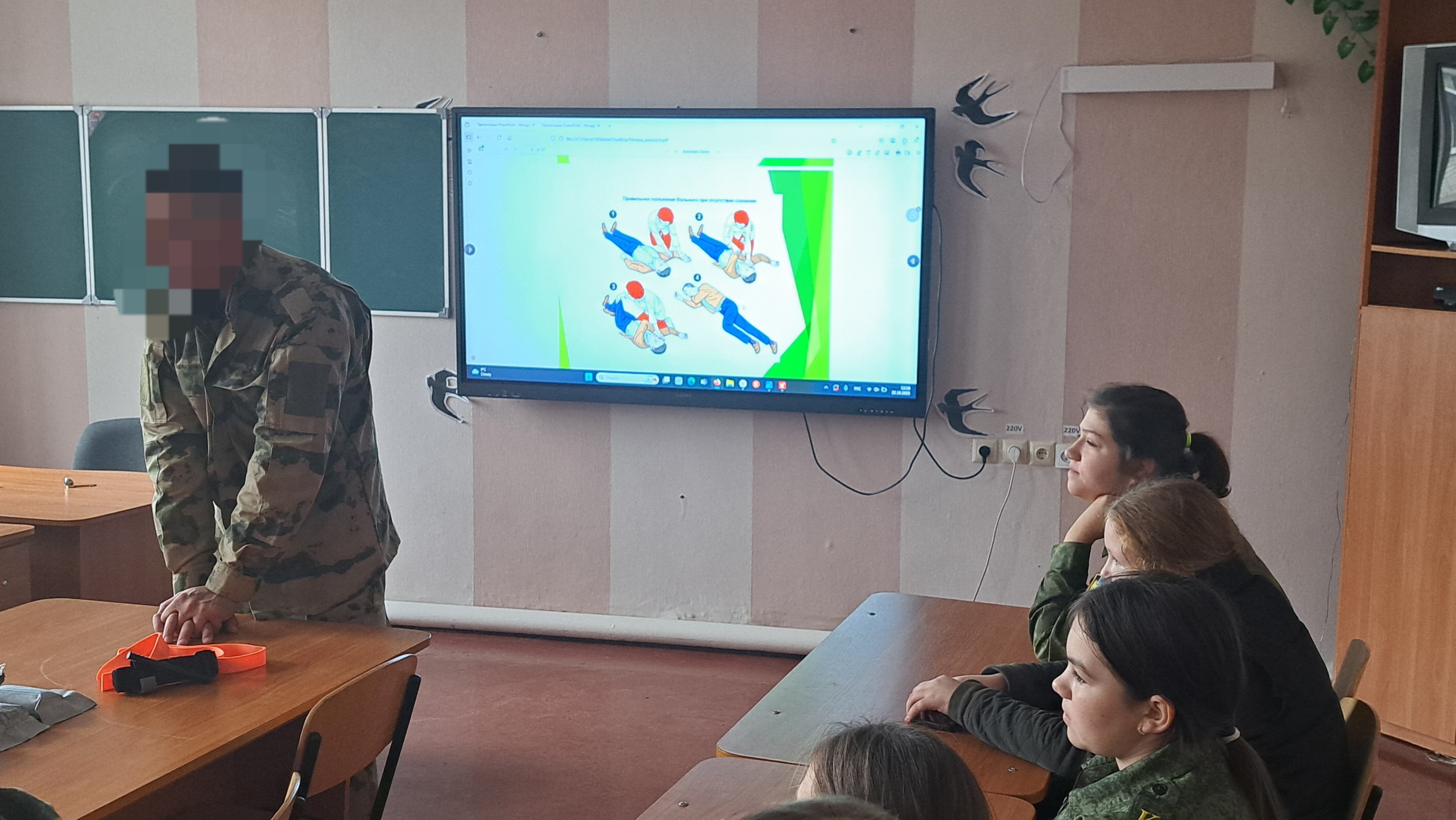 В кадетских классах «Станично-Луганской средней школы имени Грекова П.М.» прошел урок оказания первой помощи. Урок проводили военнослужащие Росгвардии и педагог-организатор Пелых Людмила Михайловна.