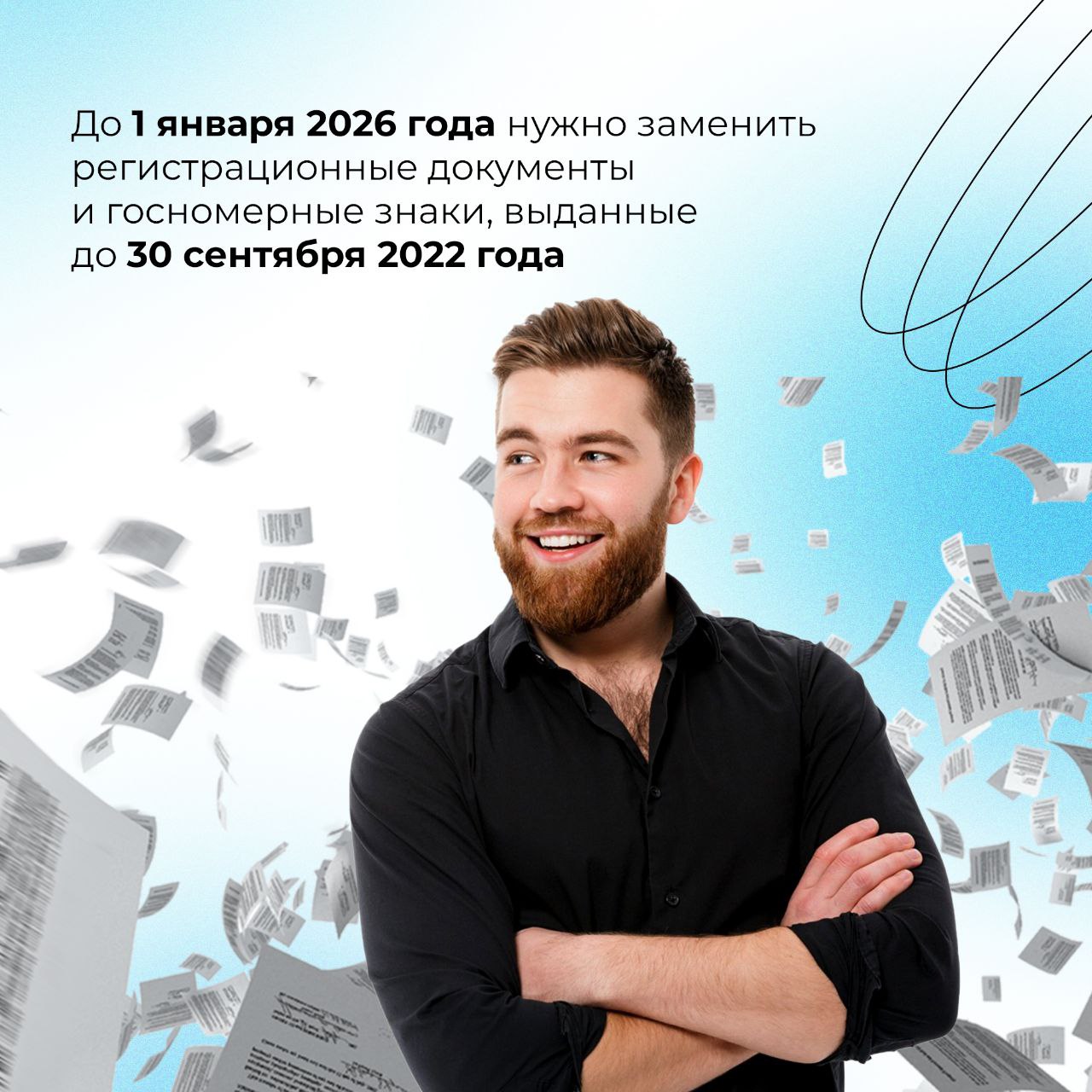 До 1 января 2026 года нужно заменить старые документы и номерные знаки, выданные до 30 сентября 2022 года.