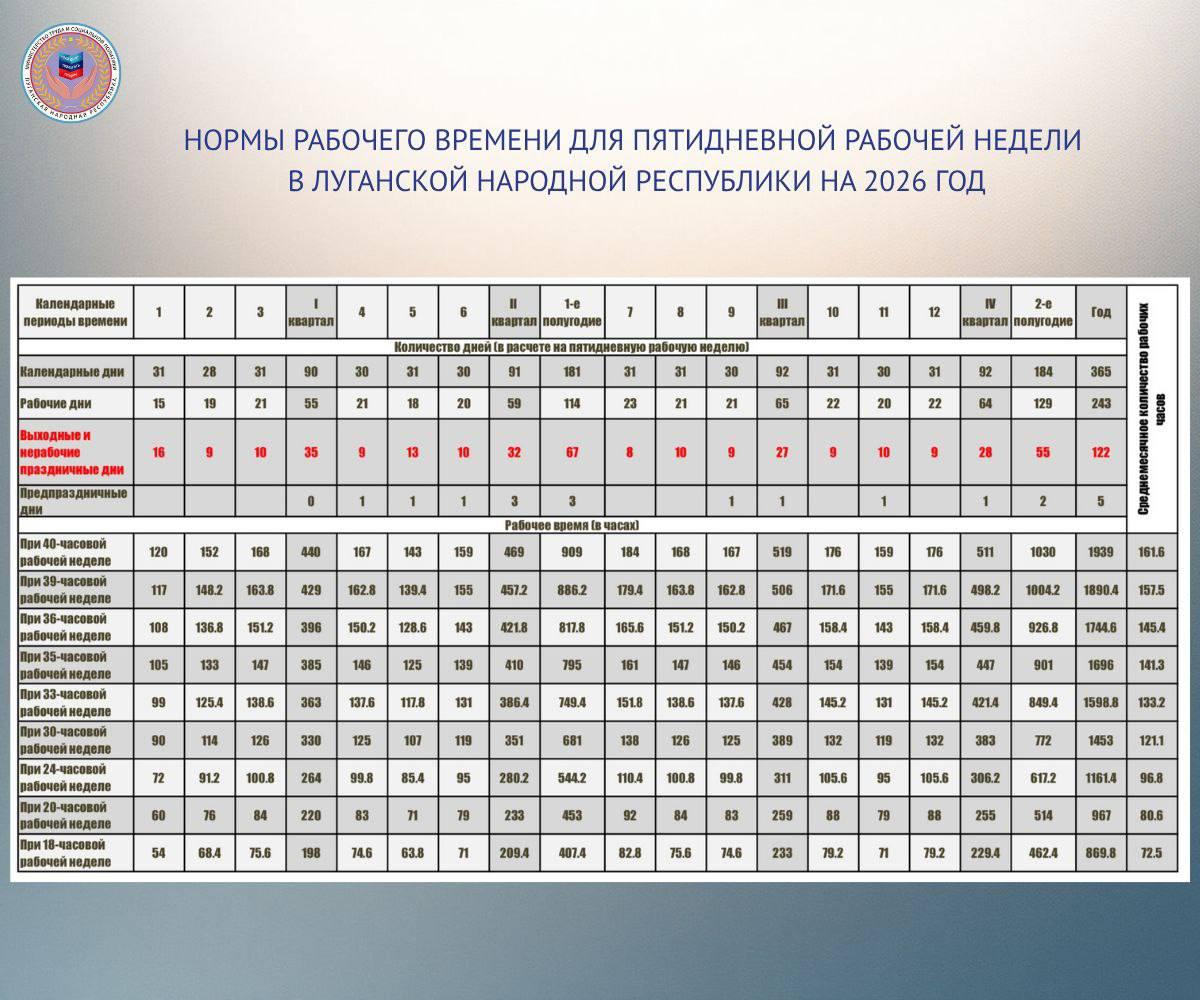 В соответствии со статьей 112 Трудового кодекса (ТК) РФ, Указом Главы Луганской Народной Республики от 21.01.2023 № УГ-51/23 «Об установлении на территории Луганской Народной Республики нерабочих праздничных дней» нерабочими праздничными днями в Луганской Народной Республике являются: