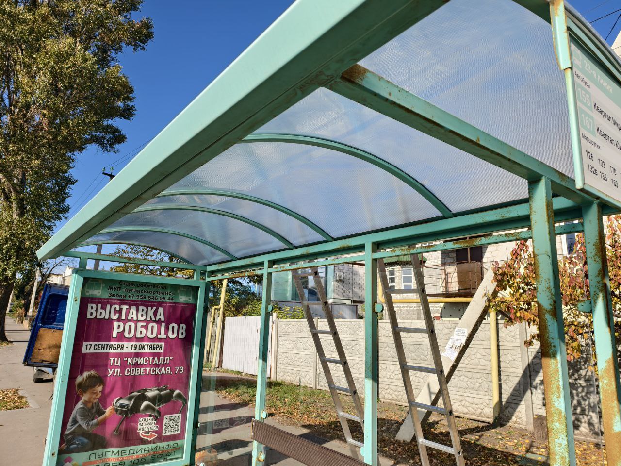 Сотрудники МУП «Луганскгортранс» отремонтировали крышу остановочного пункта на остановке «23-линия»