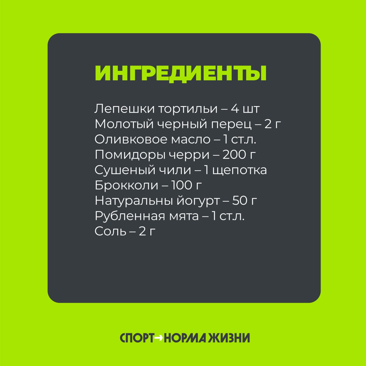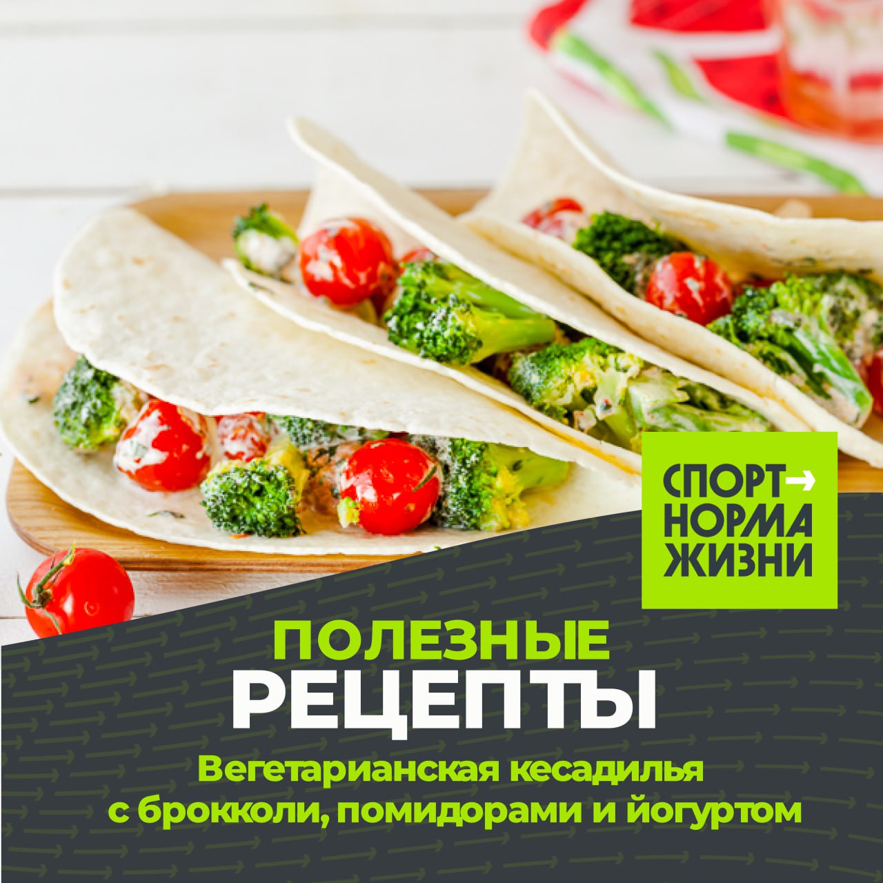 Вегетарианская кесадилья с брокколи, помидорами и йогуртом - это: