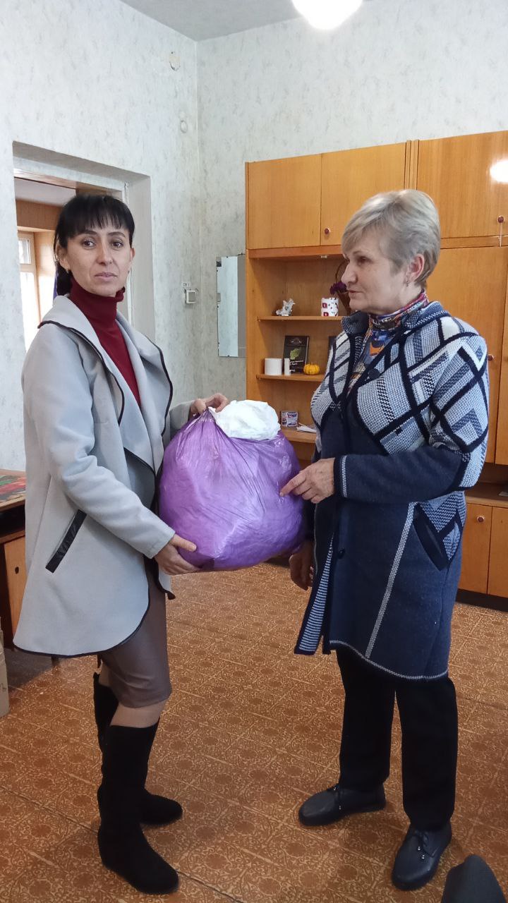 В рамках акции «Добрые дела» Елена Тараненко лично вручила средства личной гигиены маломобильным и немобильным жителям села.