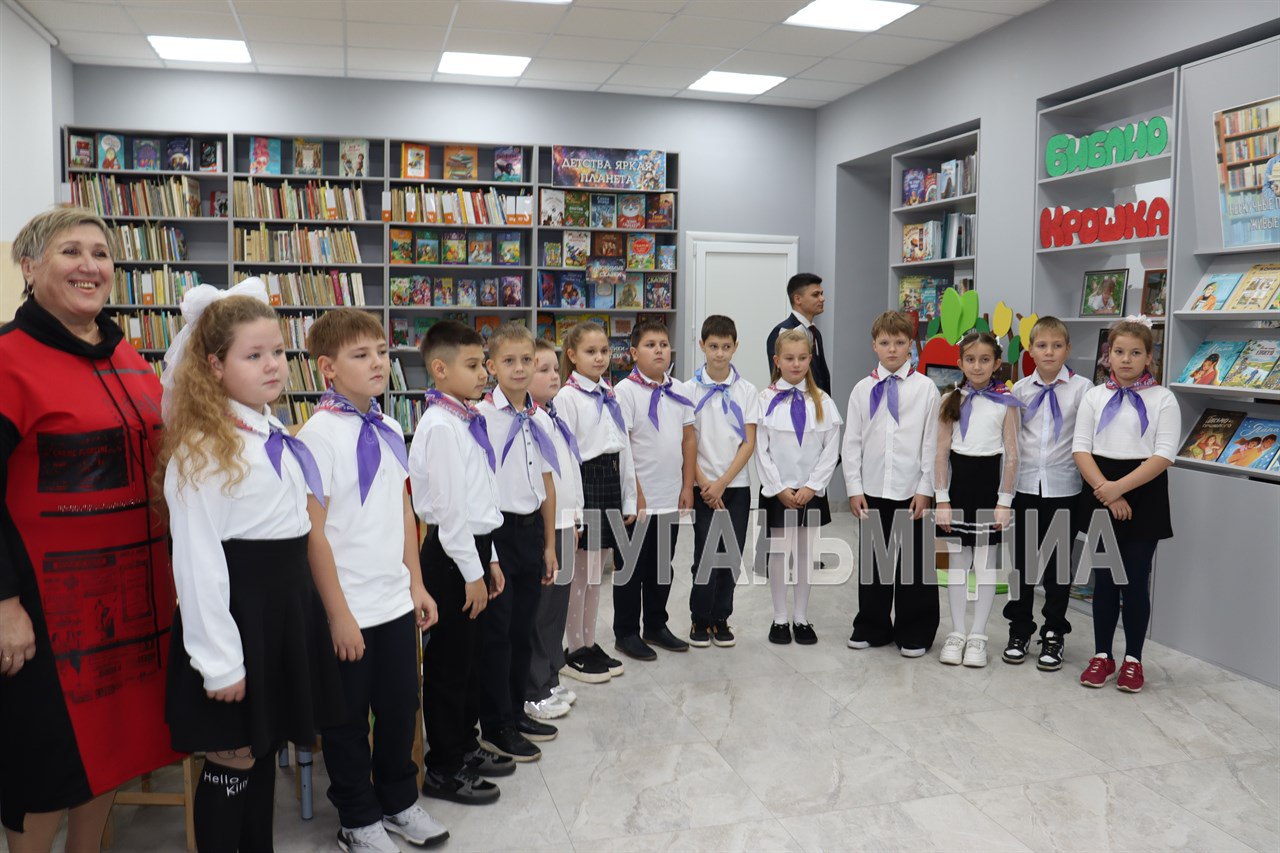 На торжественном открытии обновленной библиотеки для детей присутствовали глава Свердловского муниципального округа Андрей Сухачев, министр культуры Луганской Народной Республики Роман Олексин, директор Луганской республиканской универсальной научной библиотеки имени Максима Горького Наталья Расторгуева.