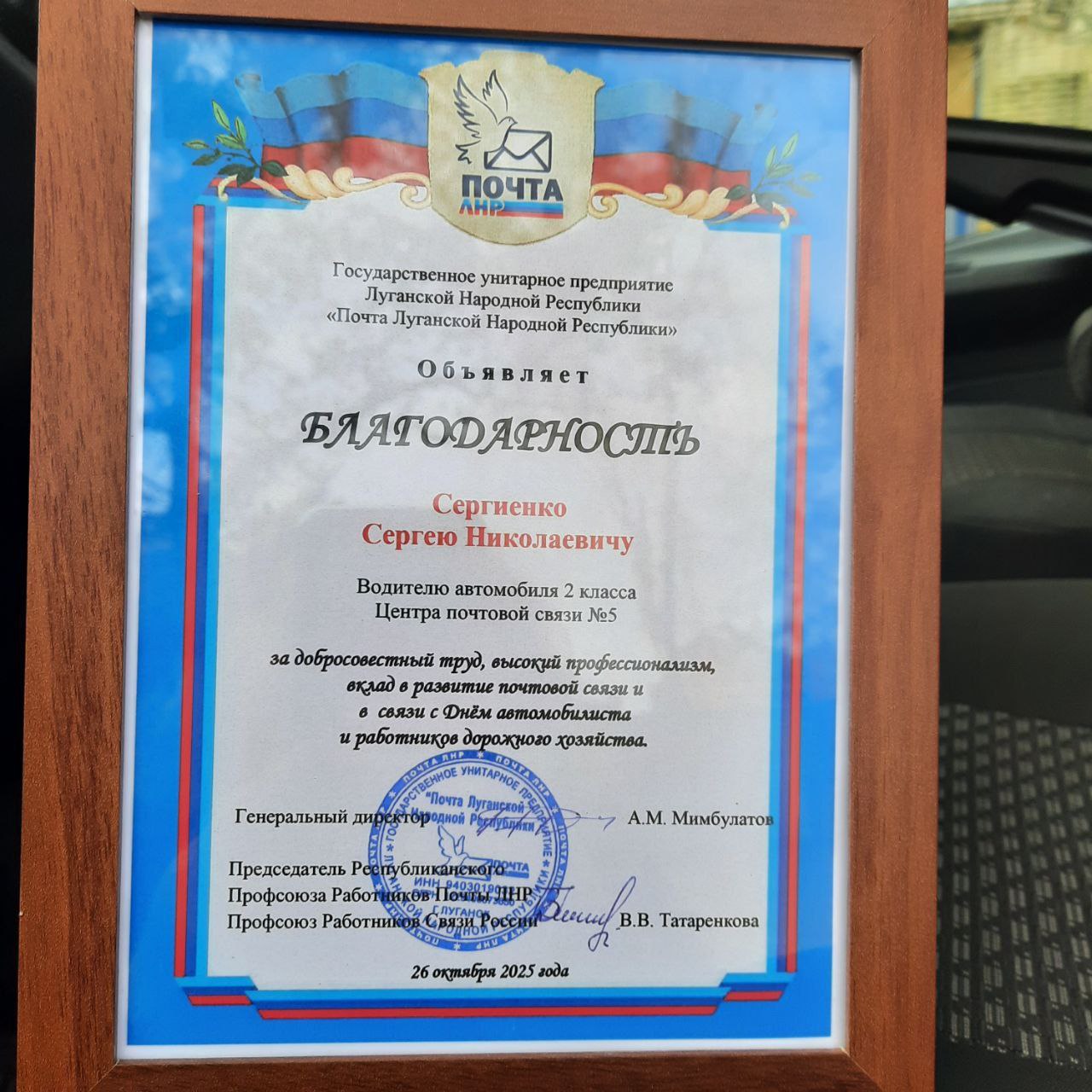 #ПочтаЛНР #ДеньАвтомобилиста #Благодарность
