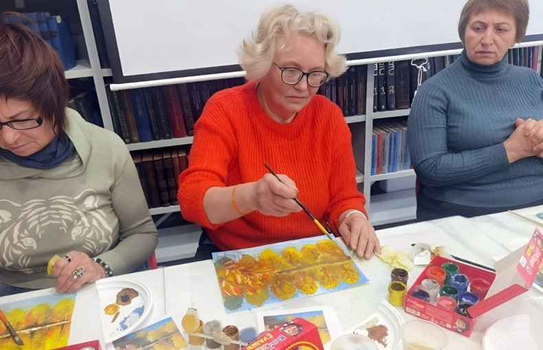 В конференц-зале Свердловской центральной городской библиотеки им. В.П. Астафьева продолжаются вдохновляющие групповые занятия по арт-терапии! Под чутким руководством талантливого художника Анны Швечиковой участники погружаются в мир творчества и самовыражения.