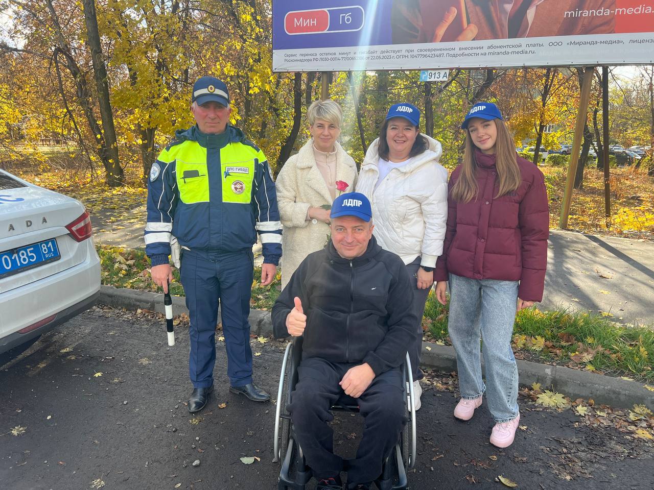 В День автомобилиста координатор Краснолучского МО ЛДПР Сергей Морозов, совместно с АНО «РЦД “Мы вместе, мы рядом” и сотрудниками ГИБДД отдела полиции «Краснолучский», провели праздничную акцию для женщин-водителей.