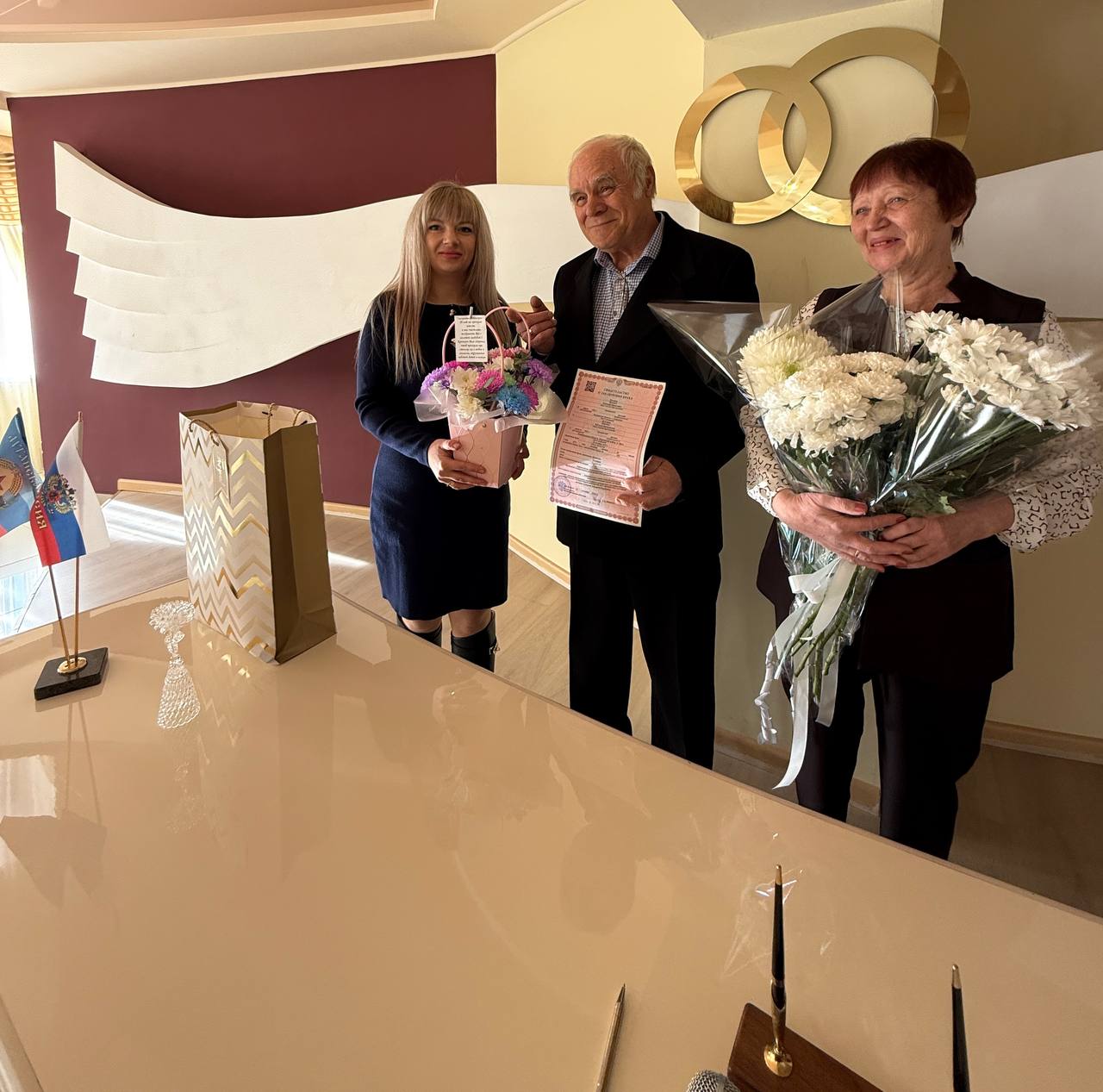 В отделе торжественной регистрации браков и рождений г. Луганска департамента записи актов гражданского состояния Министерства юстиции Луганской Народной Республики 25 октября 2025 года состоялась торжественная церемония чествования супружеской пары Евгения Борисовича и Натальи Васильевны Пузановых, проживших вместе 50 лет.