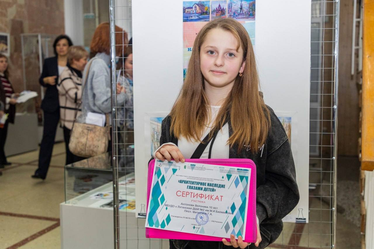 «На выставке детского рисунка на тему „Архитектурное наследие Луганщины глазами детей“. представлено 50 работ воспитанников 16 школ искусств, которые располагаются на территории ЛНР. Выставка продлится в течение двух недель и каждый желающий сможет ее посетить», — рассказала начальник управления охраны культурного наследия Минкультуры ЛНР Лилия Кулешова.#молодежь