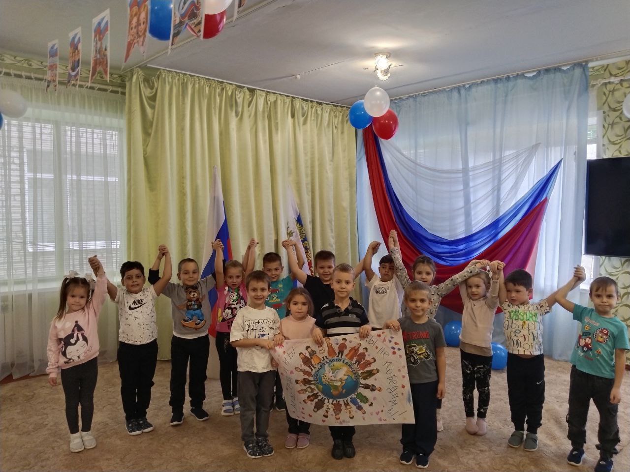 В ходе мероприятий проведенных накануне праздника, дети познакомились с историей возникновения праздника, подвигами наших предков во имя независимости Родины. Дошкольники узнали об историческом прошлом России, закрепили знания о государственных символах. Ребята познакомились с народами, населяющими нашу страну, национальными костюмами, обычаями, играми. Дети играли в игры, исполняли танцы, читали стихи.