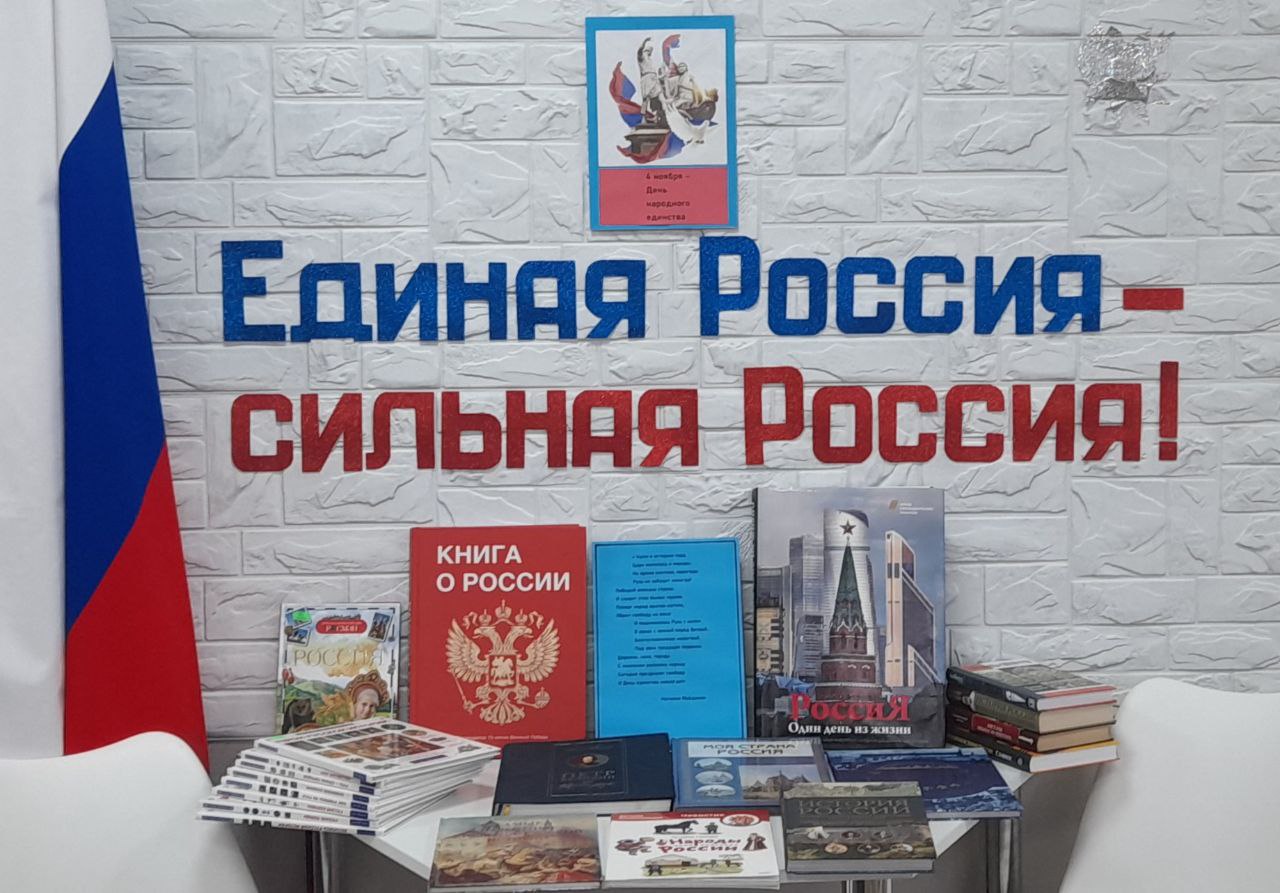 В «Библиотечном филиале для детей» МБУ «МЦБС» организована выставка «Единая Россия — сильная Россия!».
