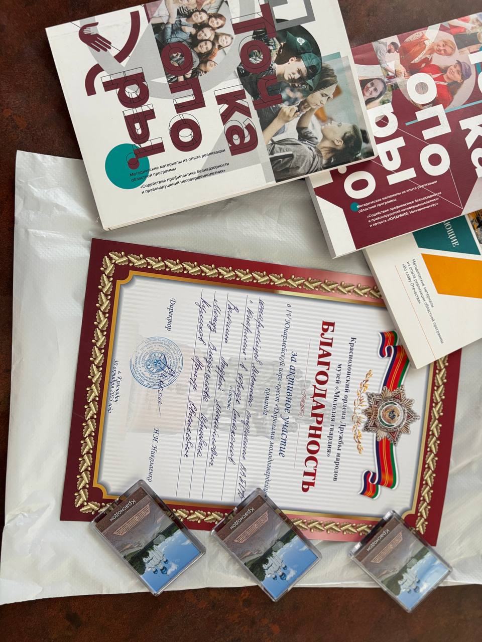 Все участники получили дипломы, благодарности и памятные сувениры. А команда-победитель — элемент юнармейской формы в подарок.
