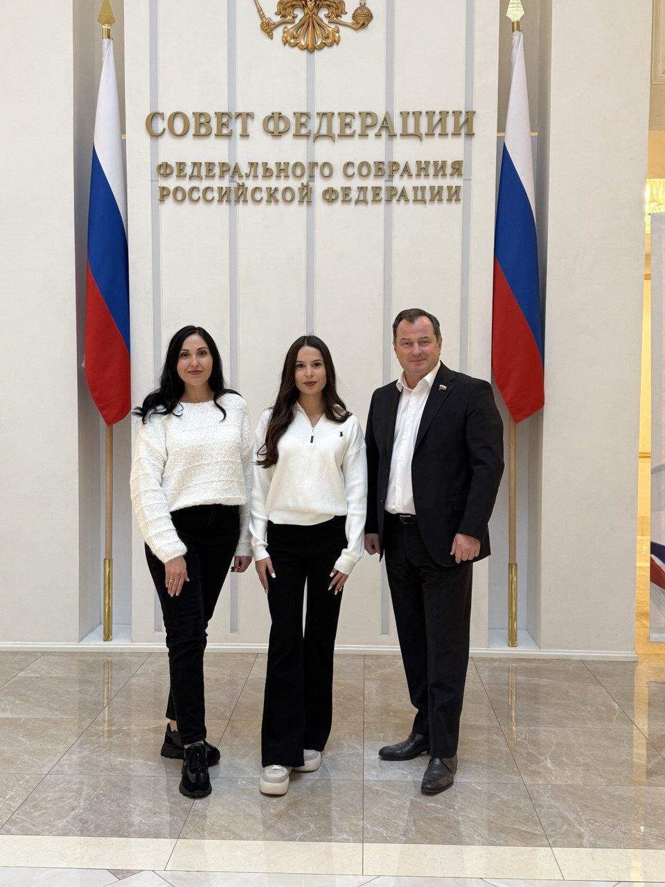 В рамках насыщенной поездки в Москву, которую организовал сенатор шефа-региона Удмуртии Юрий Федоров, активная и талантливая Арина из Лутугинского округа побывала вместе с мамой в Аппарате «Движения Первых».