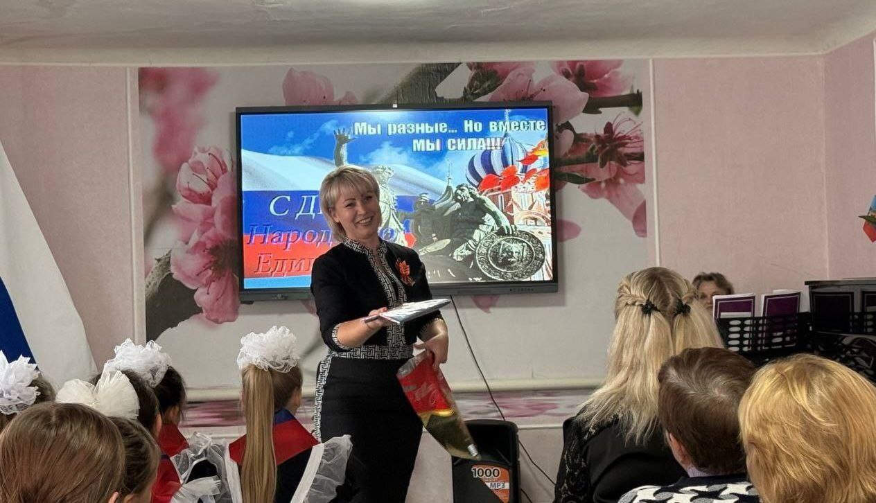 На мероприятии присутствовали учащиеся школы, участники СВО и их семьи, а также специалист отдела по делам территорий Администрации, которая поздравила всех присутствующих с наступающим праздником, вручила памятные подарки и пожелала всем единения и силы духа во времена испытаний и перемен.