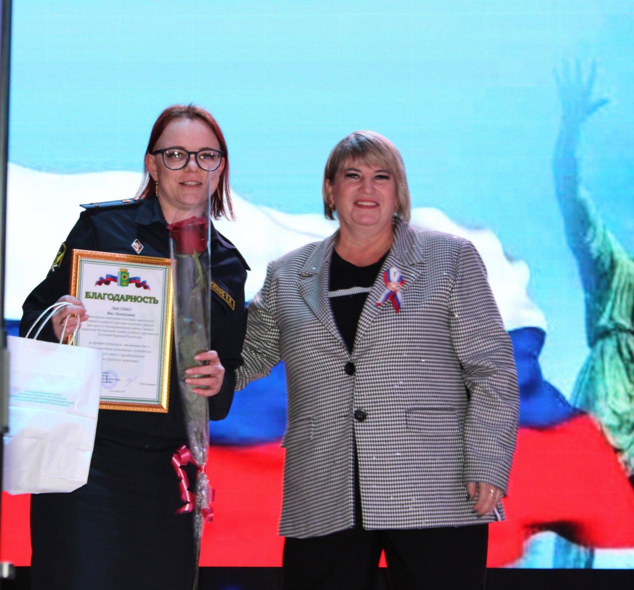 С поздравительным словом выступила глава округа Кучерявая Ольга Петровна. Она отметила важность единства и общей силы нашего народа: «День народного единства - это не просто дата в календаре. Это символ нашей сплоченности, нашей культуры и нашего общего будущего.» Также она вручила благодарности за профессионализм, отзывчивость и добросовестное исполнение служебного долга отличившимся в работе сотрудникам отделение судебных приставов по Белокуракинскому району ГУ ФССП России по ЛНР, военному комиссариату Белокуракинского района ЛНР и МВД России «Белокуракинский".